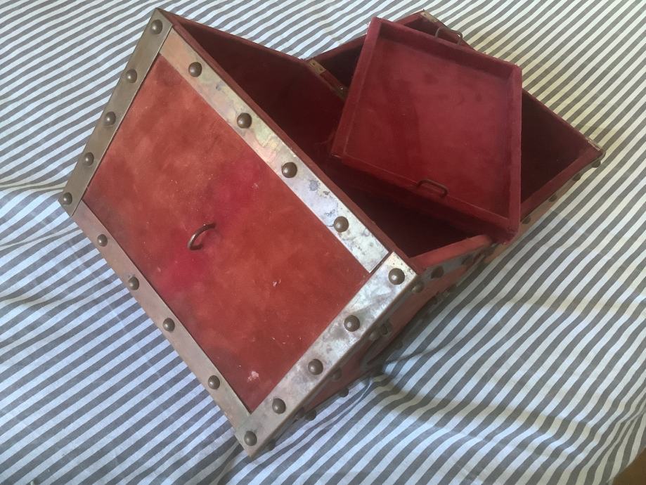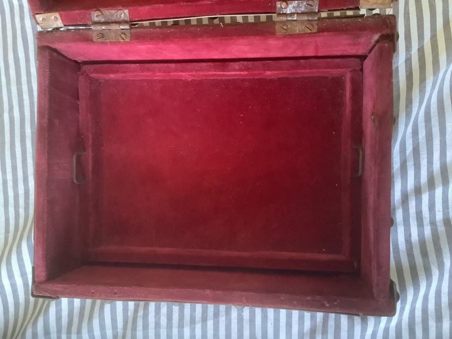 Kovčežić /vjerojatno XIX st/ sav okovan bakrom sa policom koja se vadi.