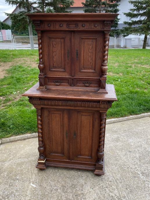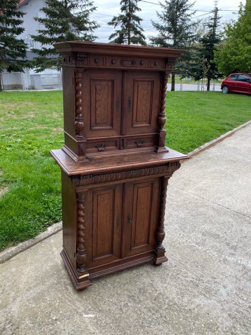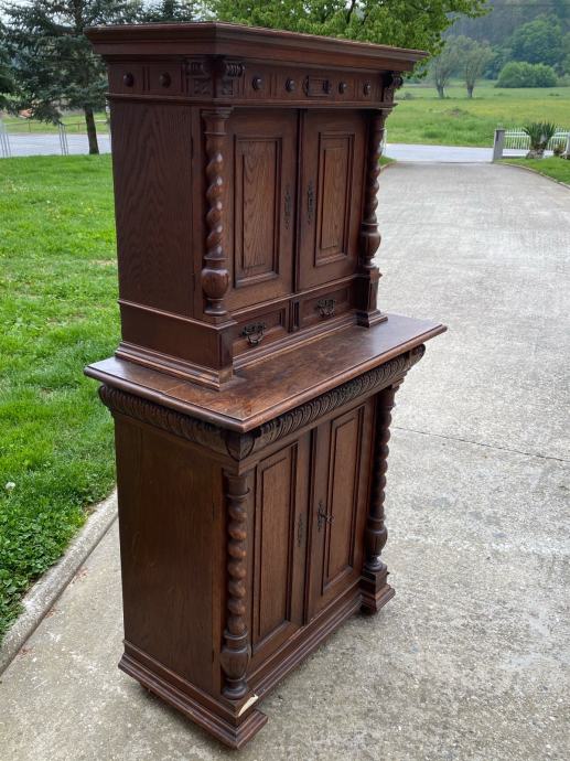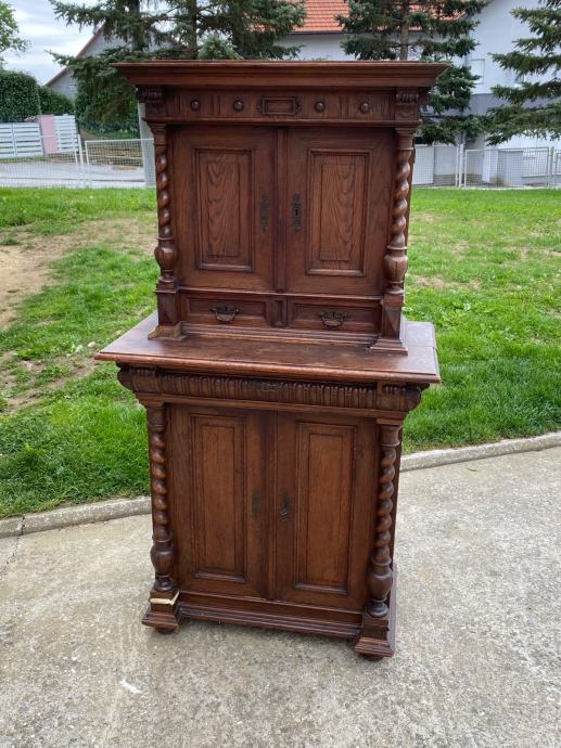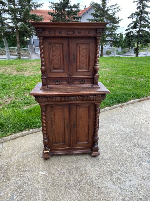 Kredenac napravljen u historicizmu, izraden od hrastovog drva u vrlo dobrom stanju sa prekrasnim tokarijama.