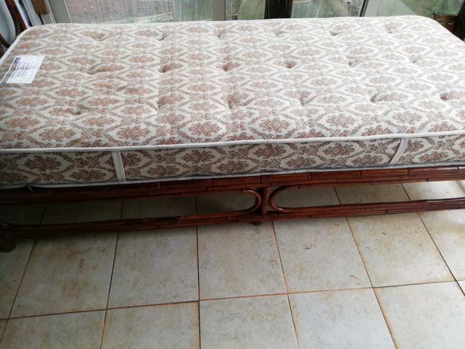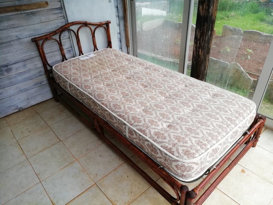 Krevet od bambusa za jednu osobu, sa podnicom i madracem. Krevet je u odličnom stanju. Dimenzije 95x195 cm.