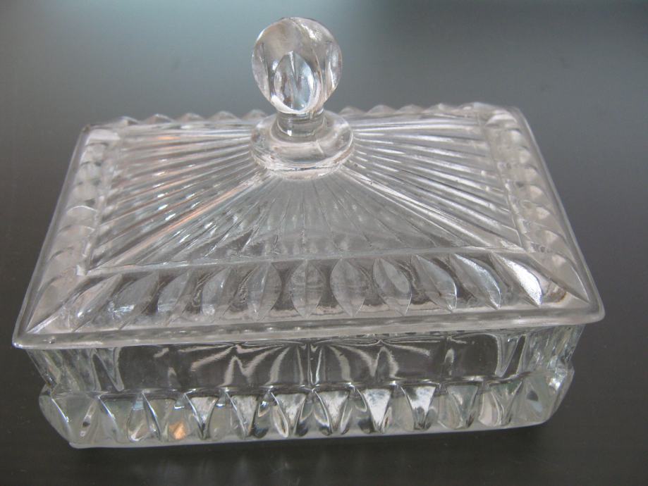 Kristalna posuda za šećer, bombine ili sl., dimenzije 16 cm x 11 cm x 11 cm