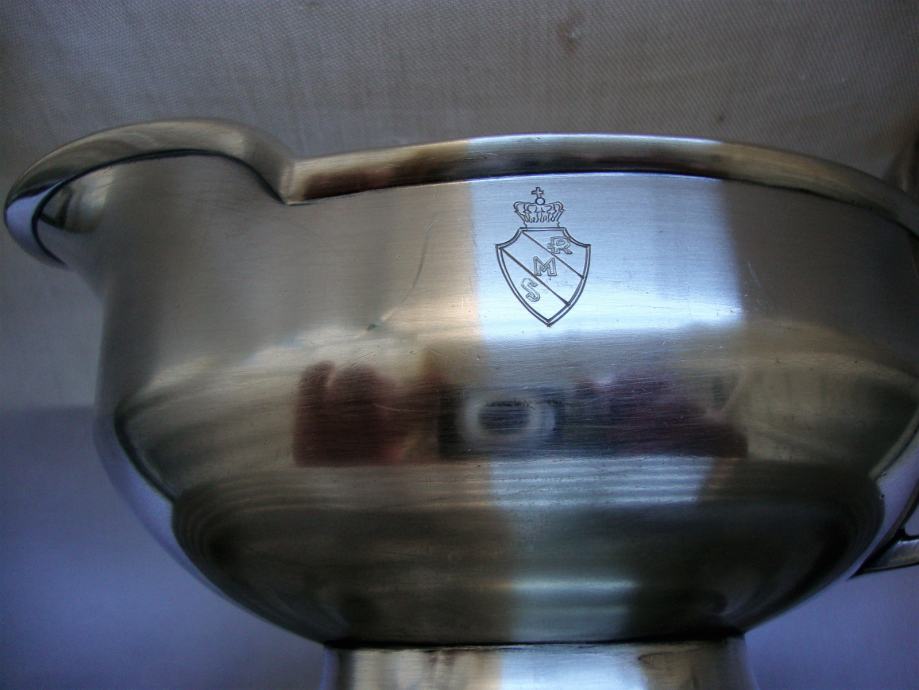 Dakle njemačka proizvodnja Austrijski brendirana firma Krupp Berndorf izrađivao je posuđe i za vojne parobrode te brodove engleskih uglednih tvrtki često povezane sa White Star Line dok je Royal Mail Liners nazivale svoje brodove RMS