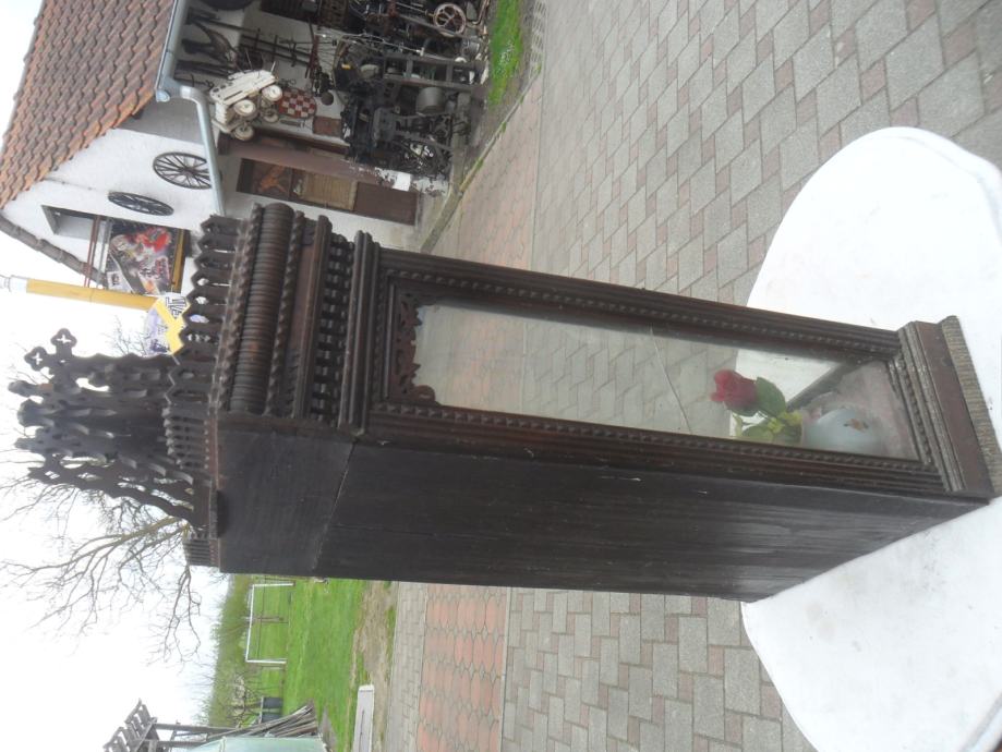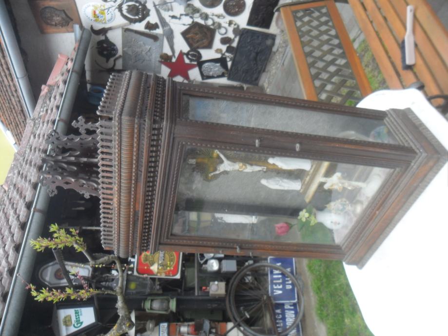 kučica je drvena,ručni rad star više 100god,sačuvan i nije crvljiv,bio u posjedu jedne bogate obitelji..max dimenzije kao na slikama su.visina sa gornjom krunom je 110cm,bez krune 85cm,širina 52cm,dubina 24cm.imam još 2 slična komada..pogledajte moje ostale oglase starina i antikviteta,a za dogovor nazovite da dogovorimo vrijednost mojih i vaših starina