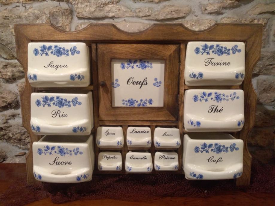 Posude od keramike i drveno kučište.