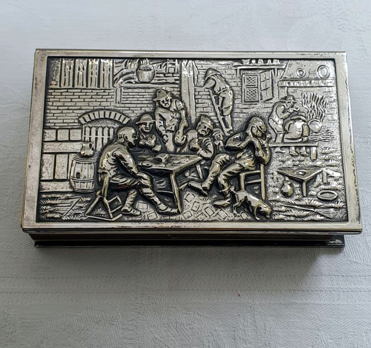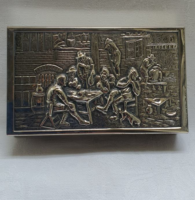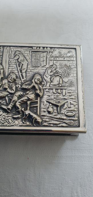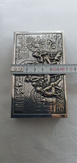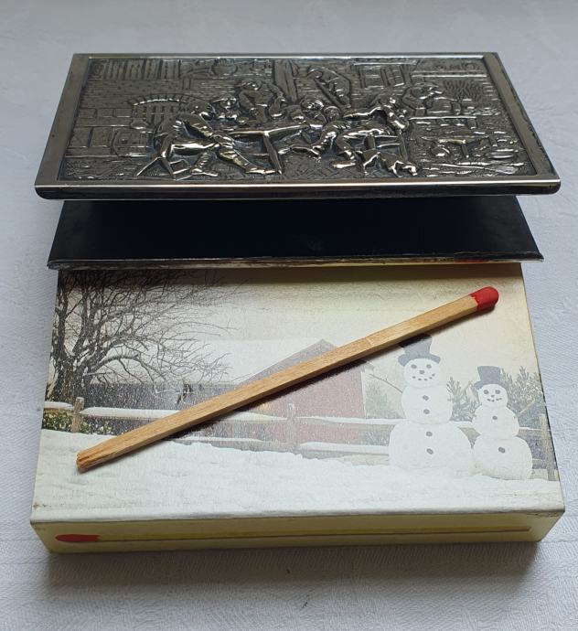 Predivan primjerak reljefna izrada ukrasna kutija za velkke šibice kaminski ukras dimenzije 11,4 cm x 7cm x 2,7cm