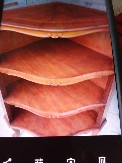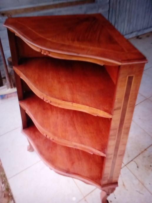 Kutna otvorena komodica. Sirina 43 cm, visina 95 cm.