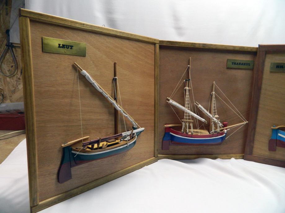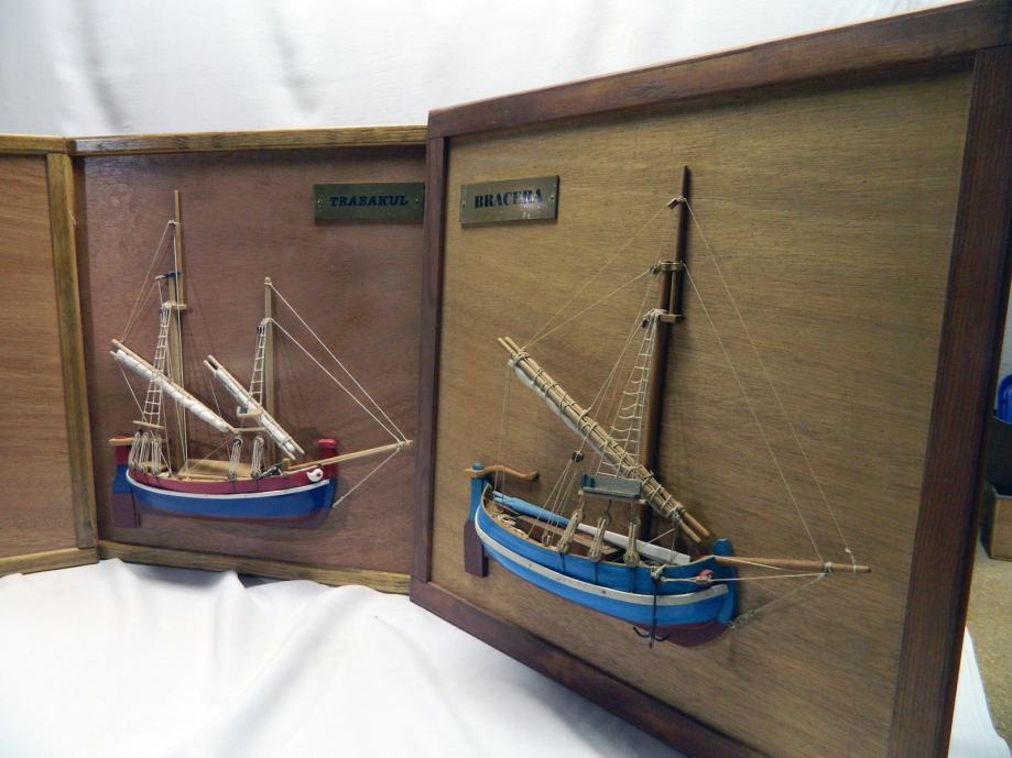 Tri najznačajnija broda naše obale, Leut, Bracera i Trabakul, služili su za prijevoz tereta i ribarenje. Makete su izložene kao polumodeli (presjek popola). Vrlo dekorativno i atraktivno. Namjenjeno postavljanju na zid, kao slika. Istaknuta cijena je za komplet.