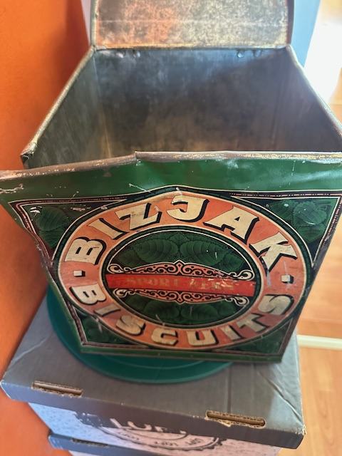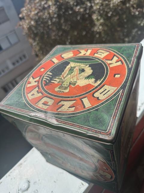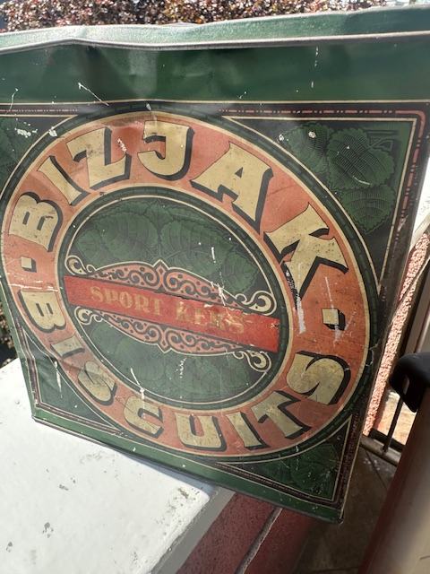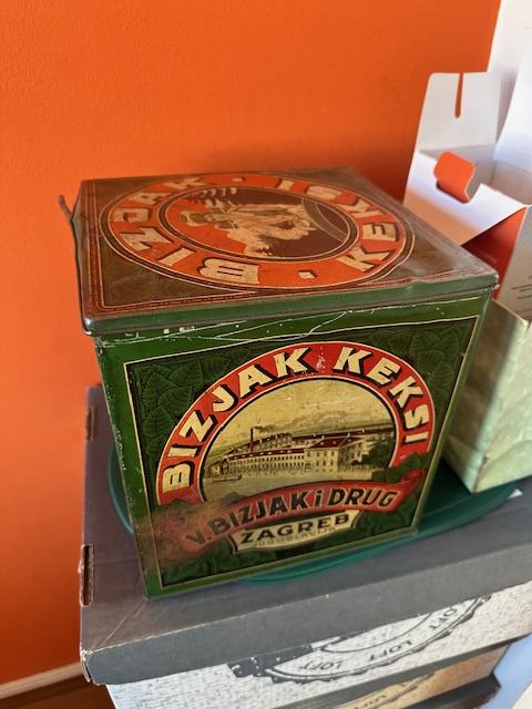 Limena ambalaža za Bizjak kekse, zelena kutija s velikim logotipom bizjak na svakoj stranici.