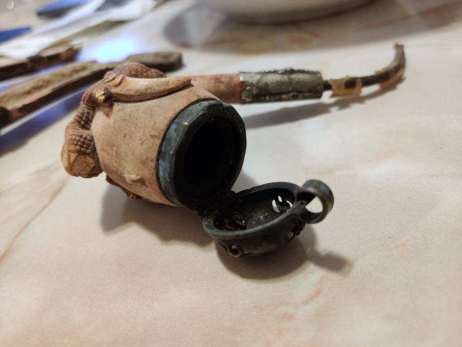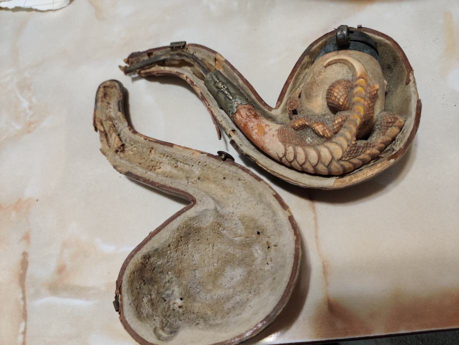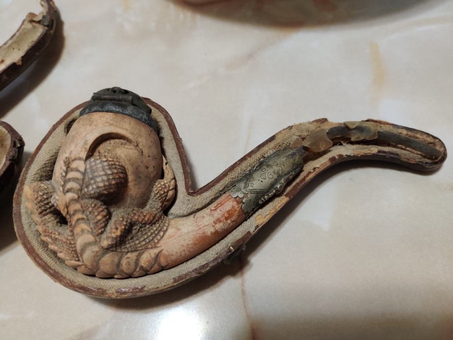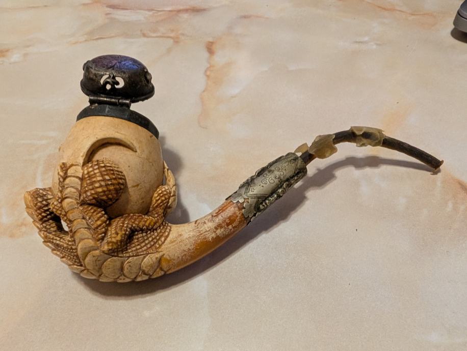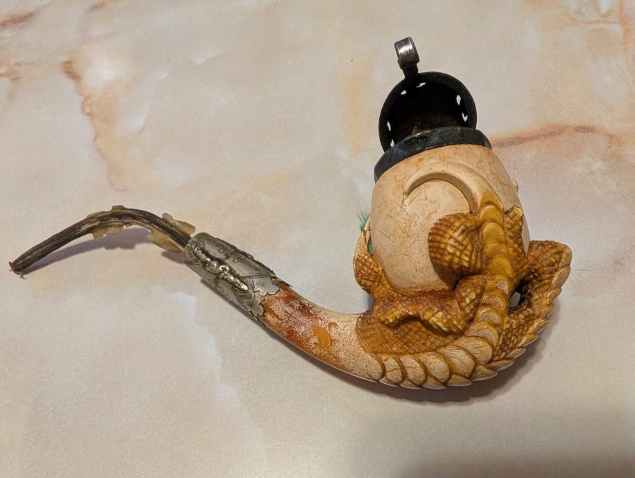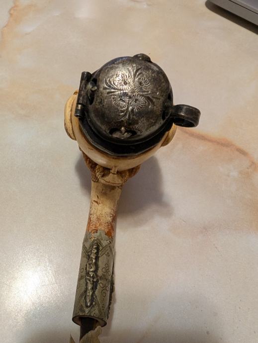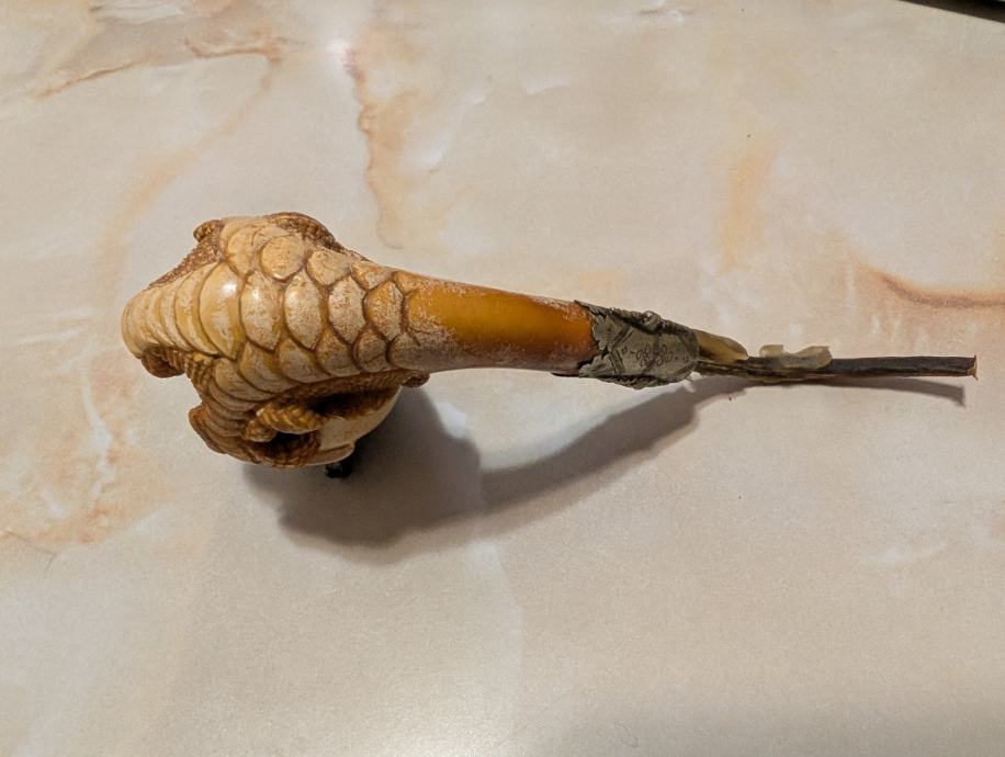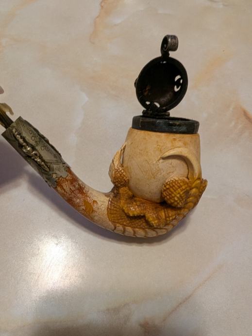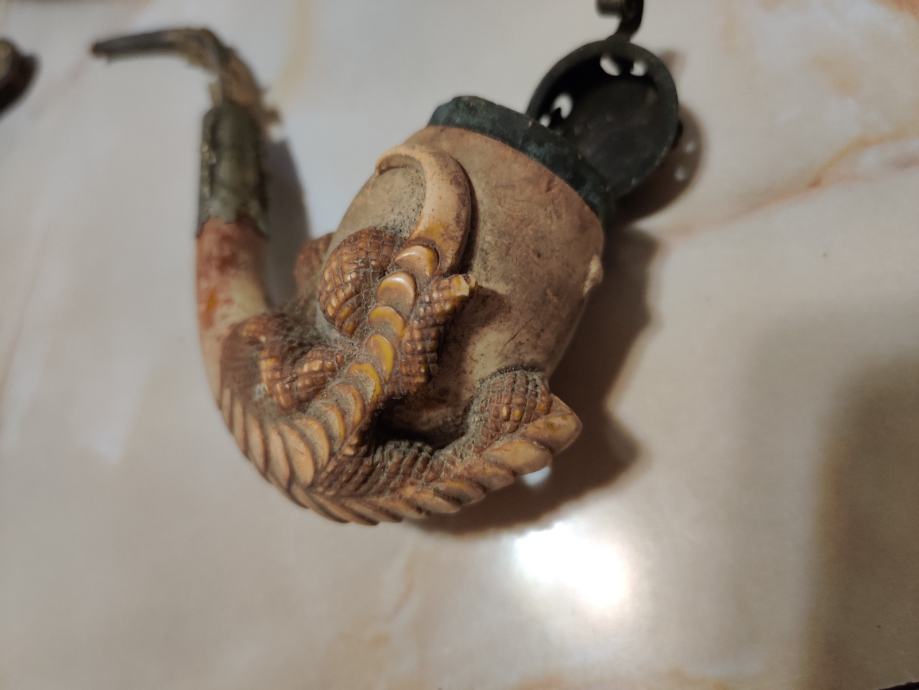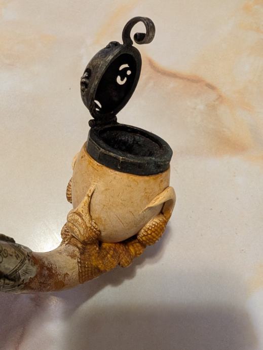 Izuzetan antikvarni kolekcionarski primerak lule od morske pjene u obliku orlove kandže.