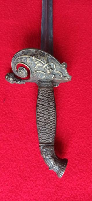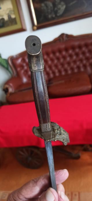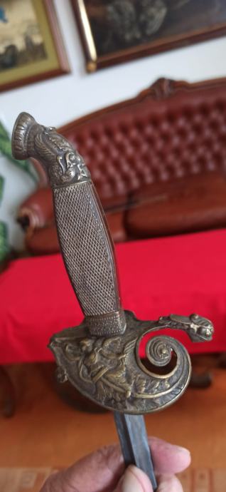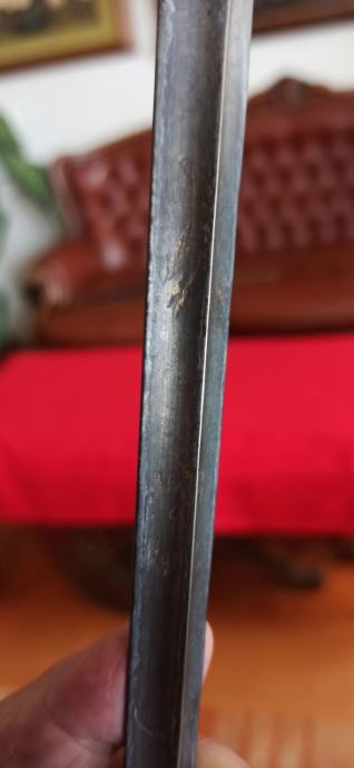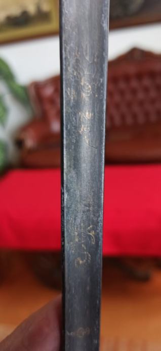 MAČ GRAĐANSKI (FRANCUSKI?) IZ VREMENA, 19.st, vrlo lijepo i oštro trobrido sječivo, sa vidljivim ostacima u zlatu izvedenih floralnih motiva.