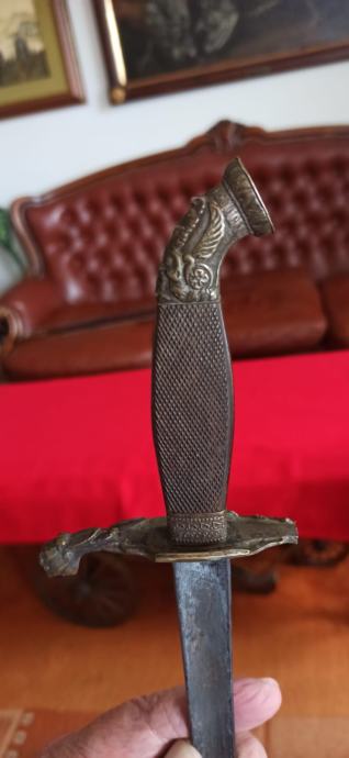 Oštećen, nedostaje dio štitnika i završetak drške. Nema korice.