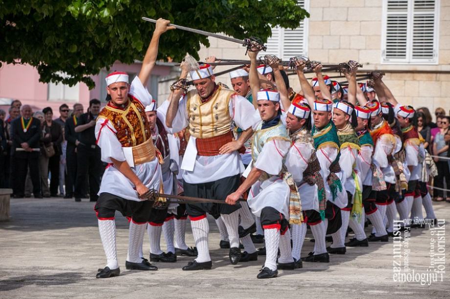 Kumpanije s otoka Korčule pripadaju skupini lančanih plesova s mačevima u kojima je mačevanje sporedno ili ga uopće nema, a naglasak je na povezanosti plesača tako da svaki plesač drži vršak mača onog ispred ili iza sebe. Povezani plesači tvore lanac u kojem se izmjenjuju različite plesne figure, zapliću se i raspleću na najrazličitije načine. Neke figure karakteristične su za gotovo sve lančane plesove diljem Europe, a neke su pak specifične samo za određeni lokalitet odnosno kumpaniju.