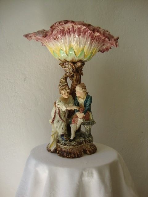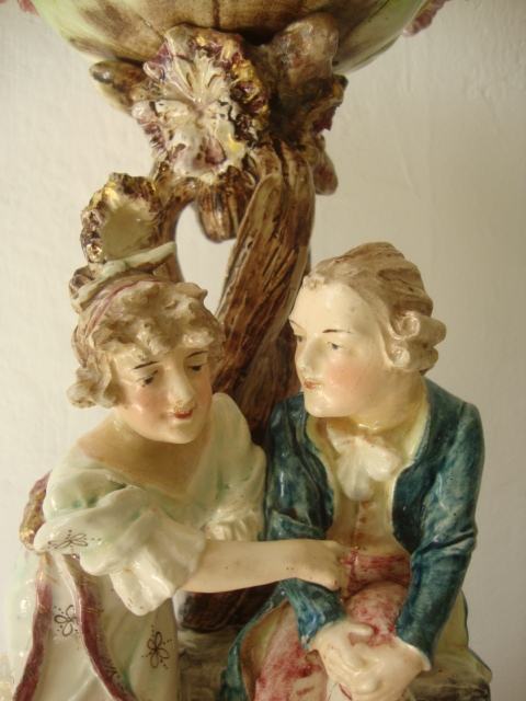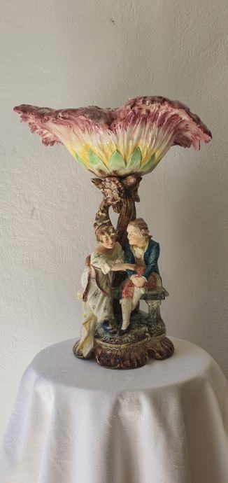 Predivan unikatni primjerak podnosa iz 1839. godine raskoši ode nema kraja predivno postolje sa zaljubljenim parom a poviše velik raskošni cvijet
