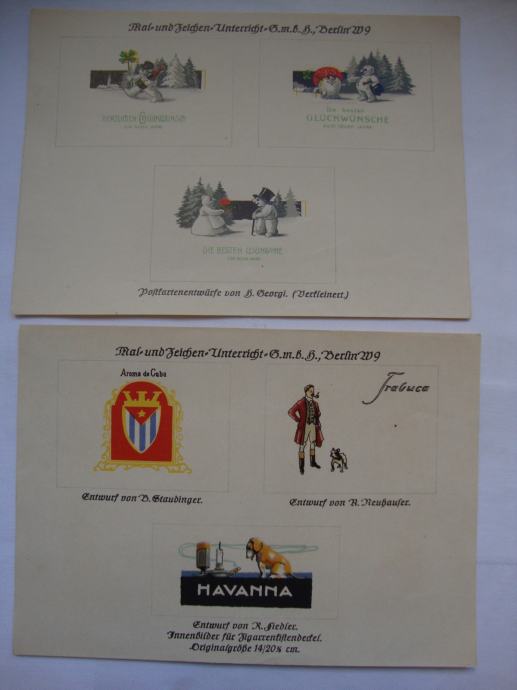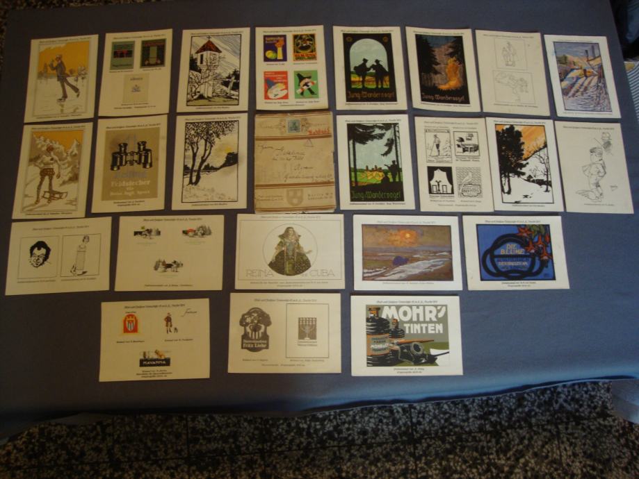 Sammlung von 23 uberwiegend fabrigen entwurtszeichnungen fur Postkarten ,Plakate,Reklamemarken,Weinetiketten
