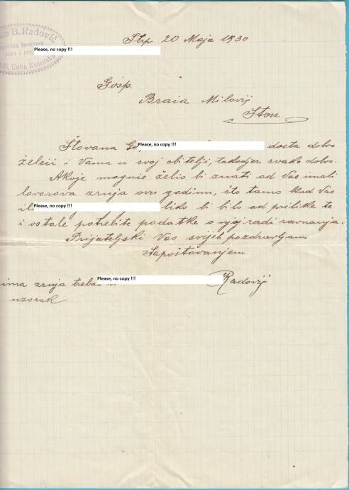 MARKO B. RADOVIĆ - RISAN (Boka Kotorska) pismo iz 1930.g. * Crna Gora