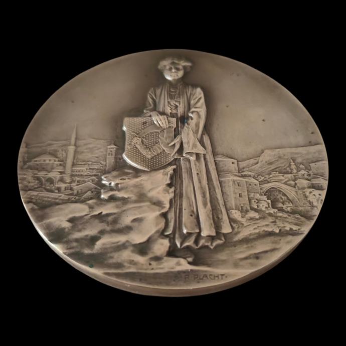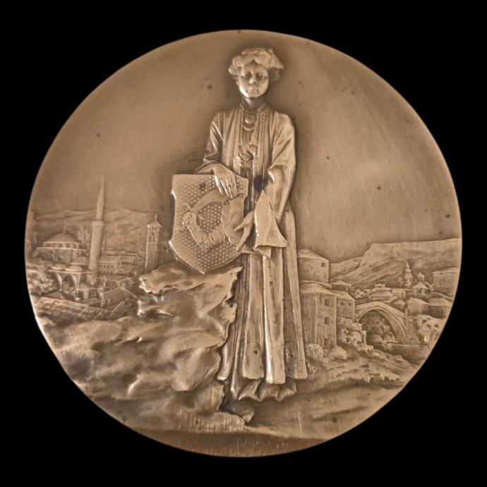 Velika broncana medalja iz 1910 povodom posjete Ferdinanda Sarajevu i Mostaru...stanje kao na foto,.