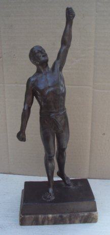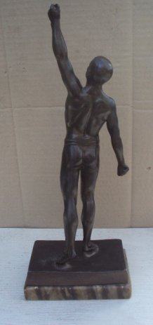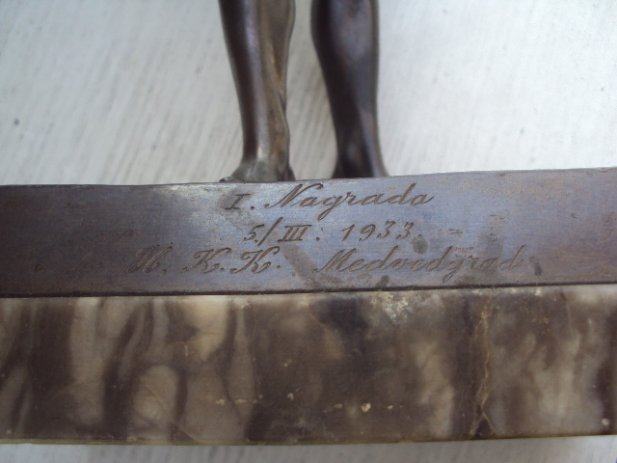 HKK Hrvatski kuglacki klub.Statua metalna.Postolje napuklo vidljivo na slici.Visina cca 36 cm.Značajno za povijest Hrvatskog sporta,
