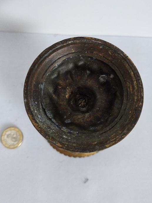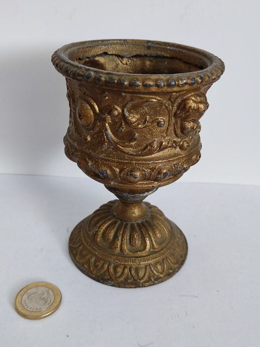 Metalni kalež ili dio noćne lampe. Visina 12 cm, širina gornjeg dijela 8 cm.