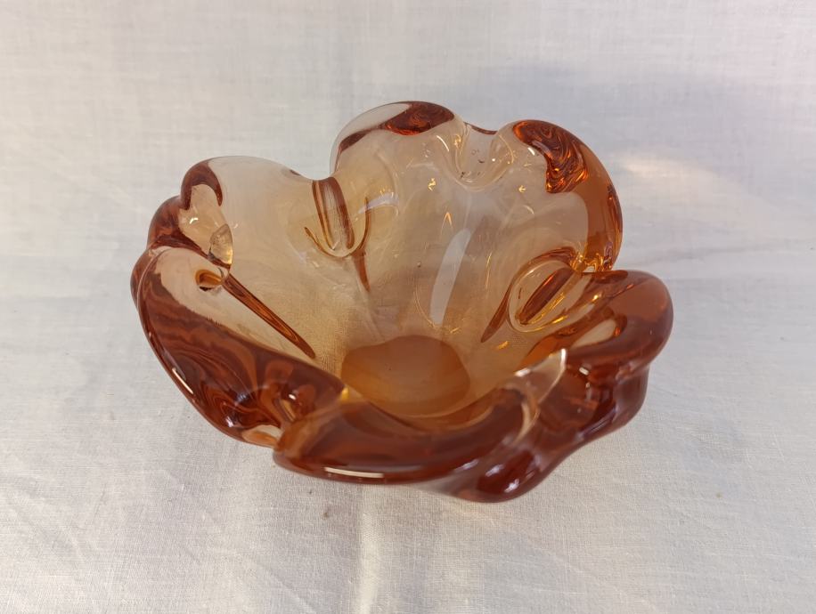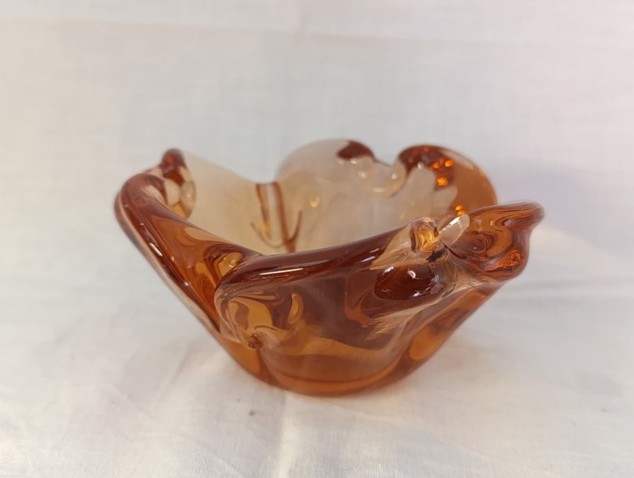 Vintage mid-century pepeljara staklo boje konjaka izuzezno dekorativna Bez ostećenja