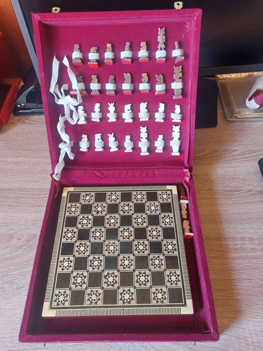 Prodajem minijaturni ručno izrađeni antikni šahovski set sa Bliskog Istoka (intarzijski) šah.