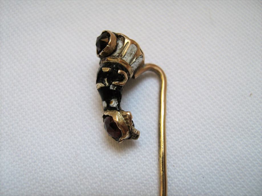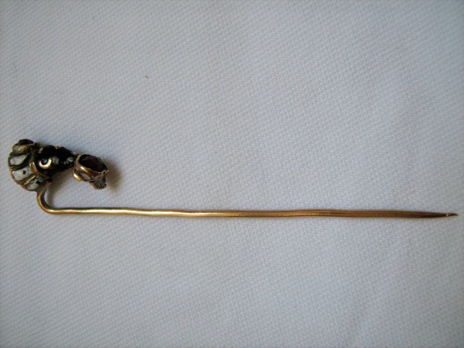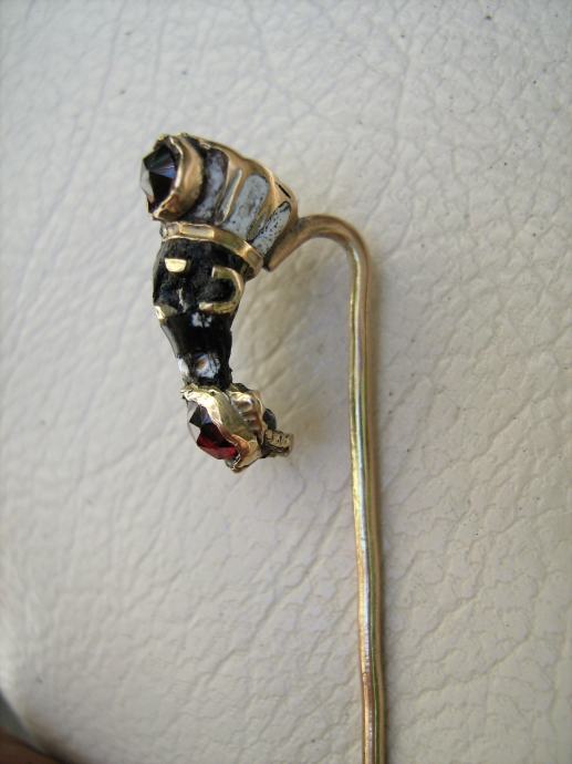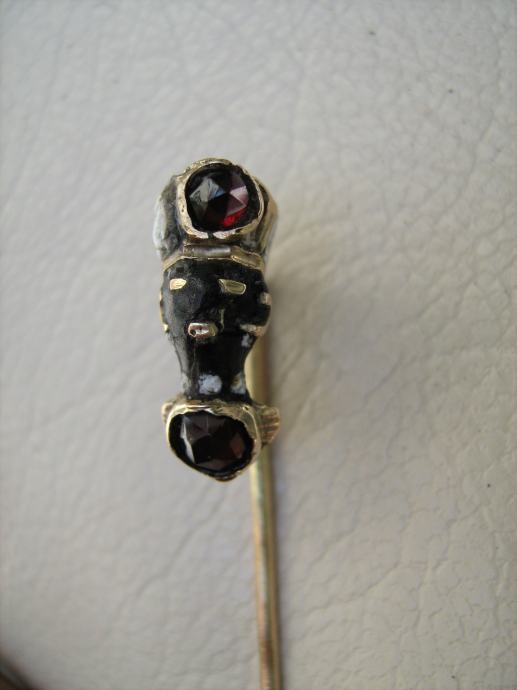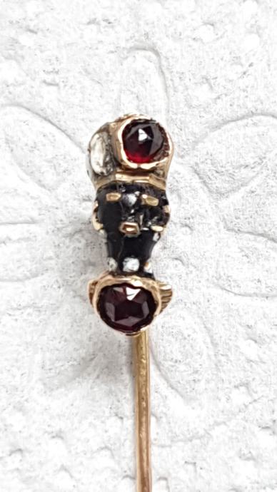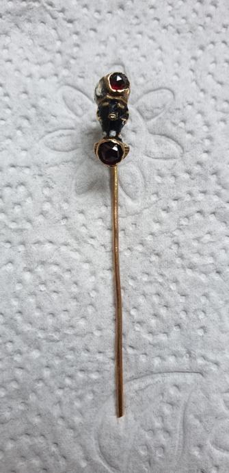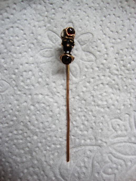 Igla iz 19. stoljeća ,ručno izrađena od staroga zlata i crvenim brušenim kamenjem (granati) 14 kt zlato i emajl