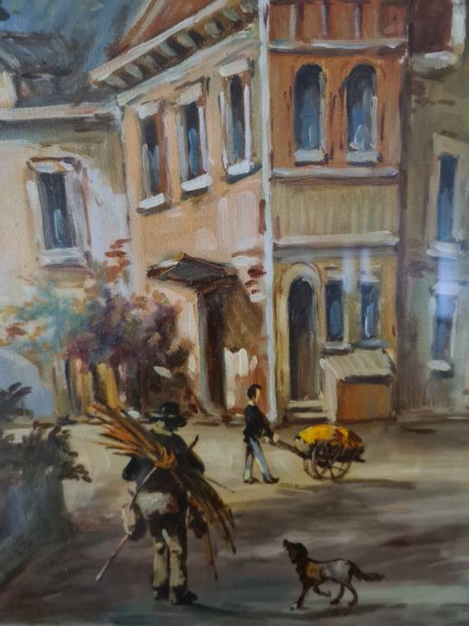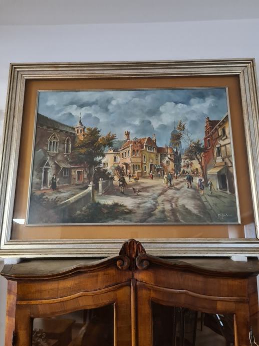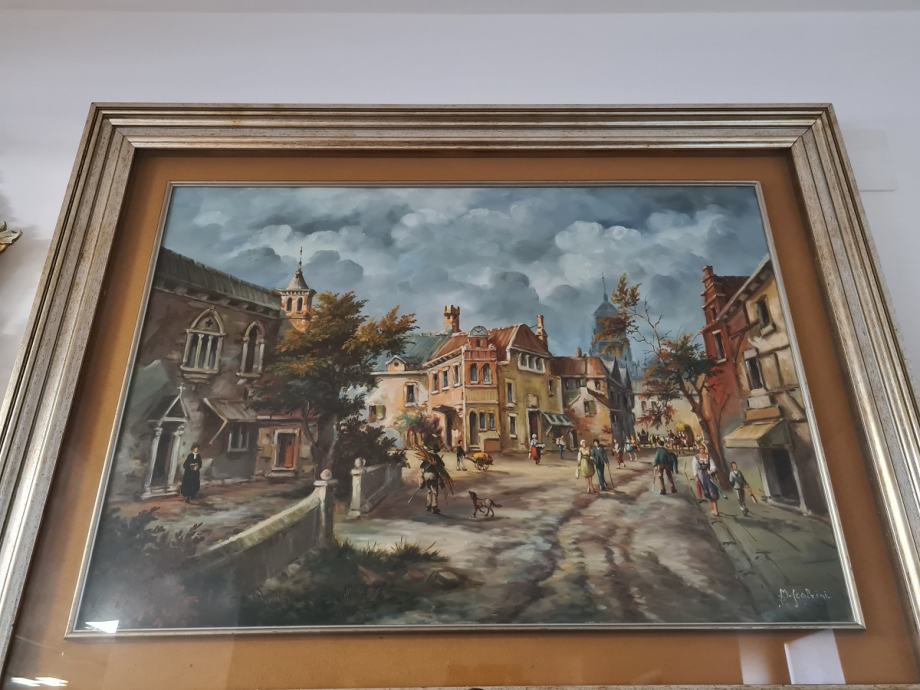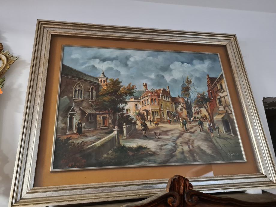 Veliki format - ulje na platnu - motiv grada. Dimenzije: 100 x 130 cm š sa okvirom, bez okvira: 70 x 100cm.