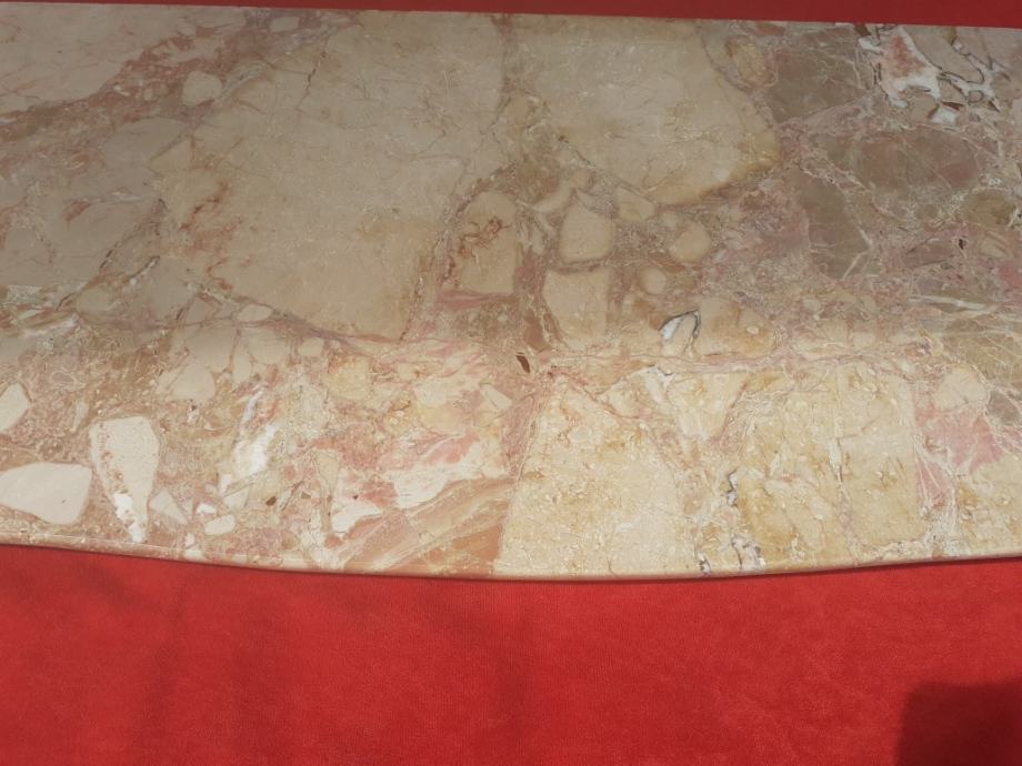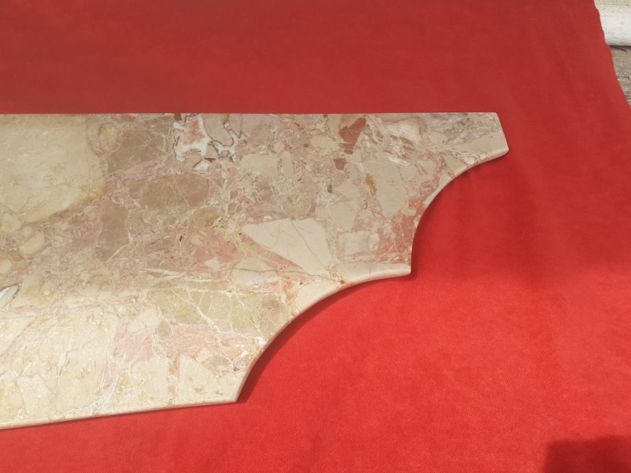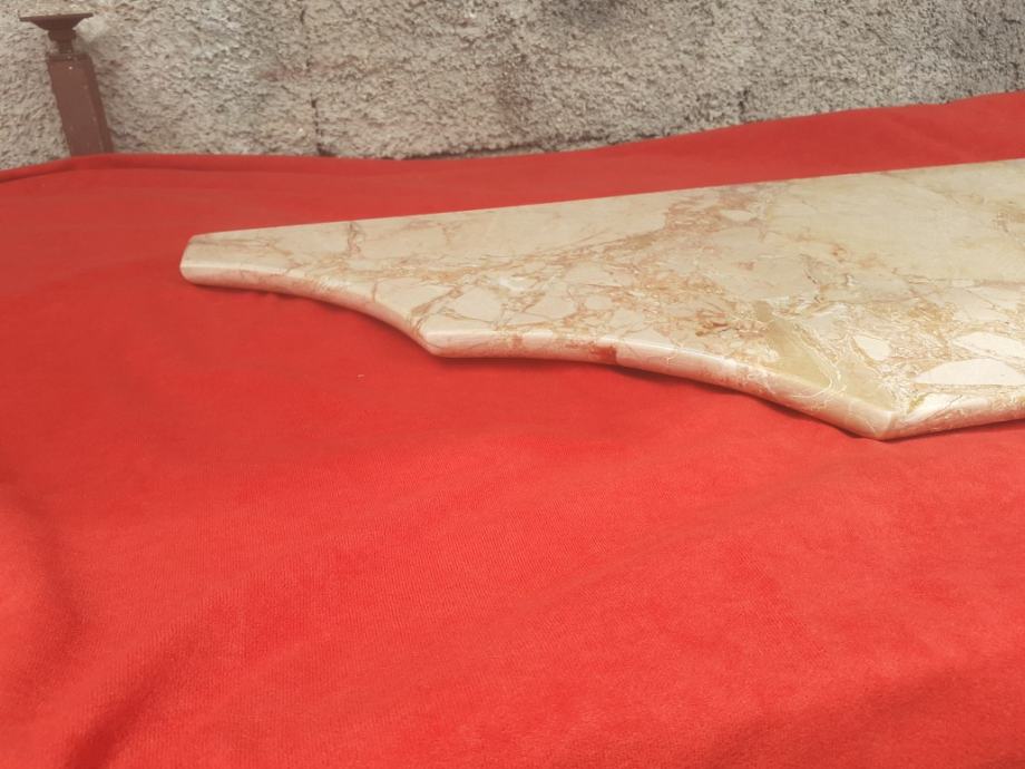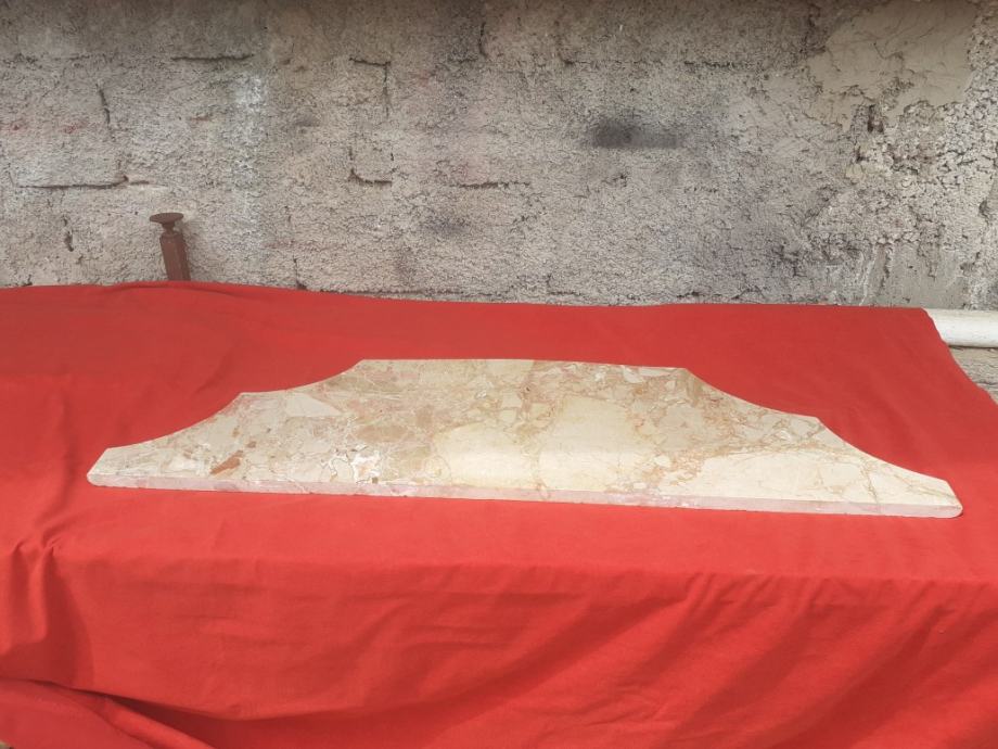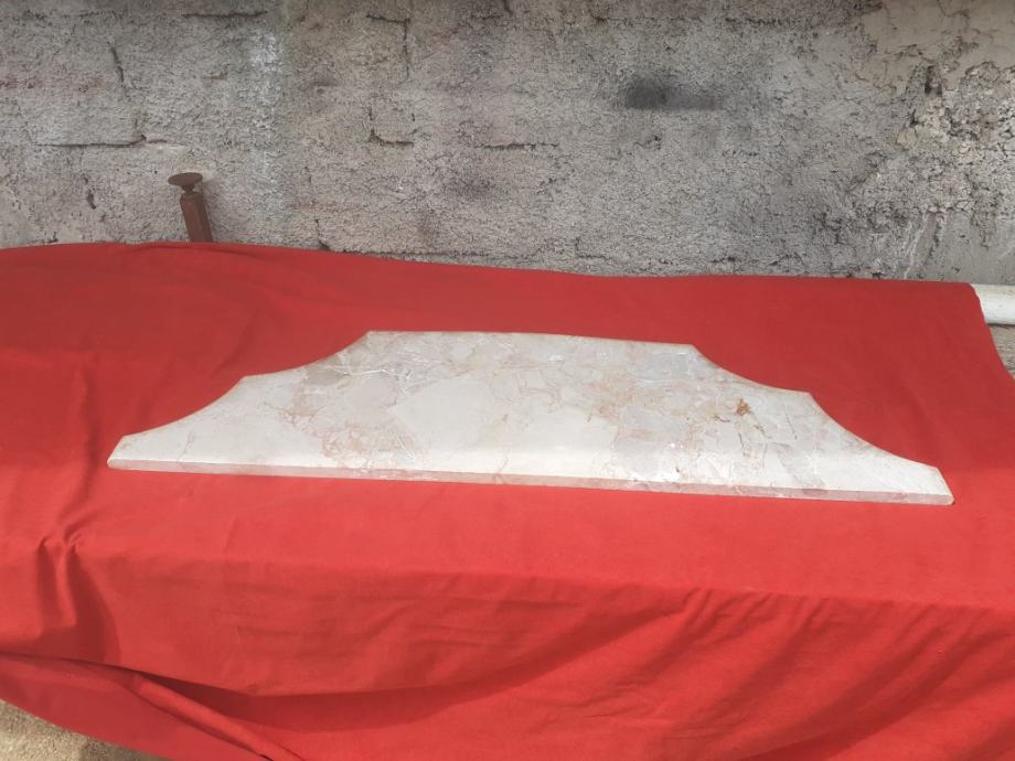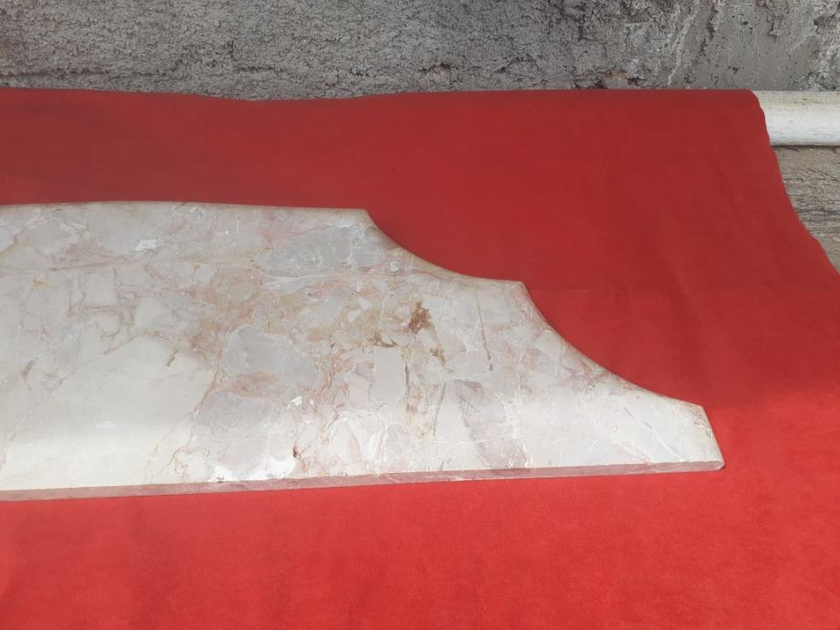 Prodaje se mramorna ploča izrađena u antiknom stilu dimenzija: dužina 102 cm, najveća širina 31,5cm i debljine cca 1,9 cm. Mramorna ploča je moguće služila kao površina neke konzole. Mramorna ploča ima tri mala površinska oštećenja sa donje strane u vidu plitkih površinskih rupica (vidljivo na fotografijama). Cijena mramorne ploče je 133 eura. Mogućnost osobnog preuzimanja u Zadru. Kontakt broj mobitela 091 131 10 36.