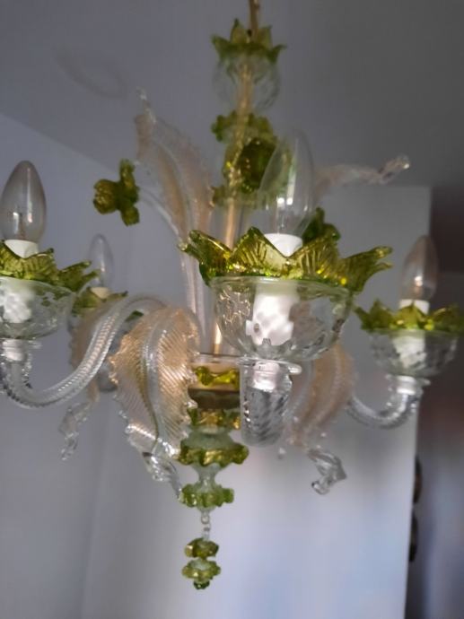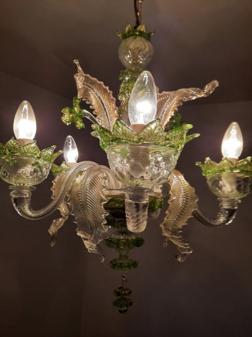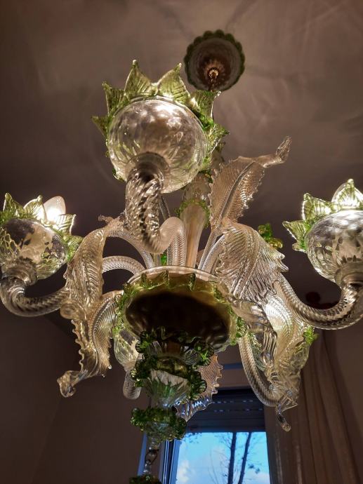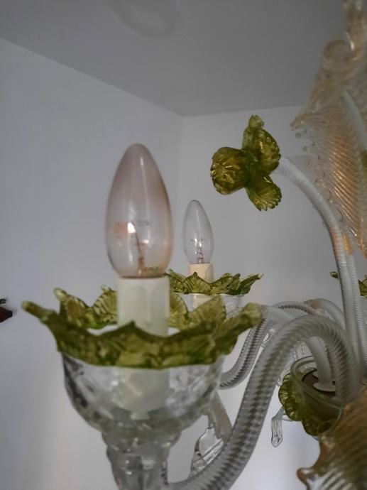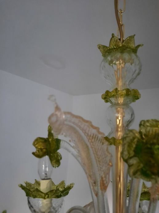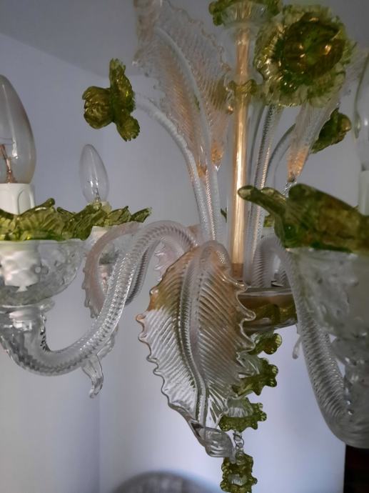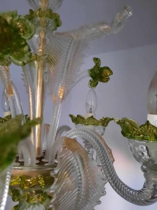 Murano ( venecijanski) luster marke Barovier- Toso, ručni rad, 1m visine × 50 cm širine, 24 k zlatni prah .