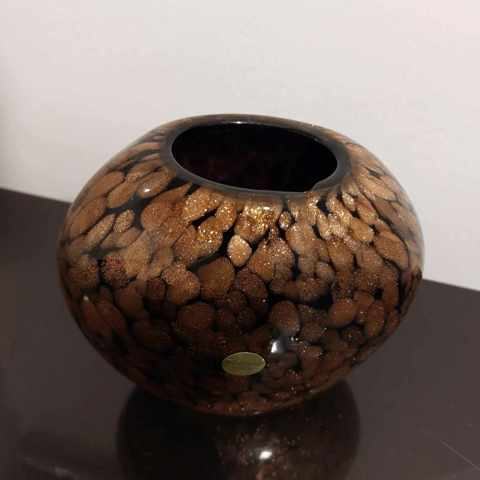 Kupljena u Veneciji. Pravo murano staklo. Moderan dizajn. Visina 14,5, širina 14,5 cm. Promjer otvora 5x4 cm. Pišem rabljeno ali stajala je samo u vitrini među knjigama.