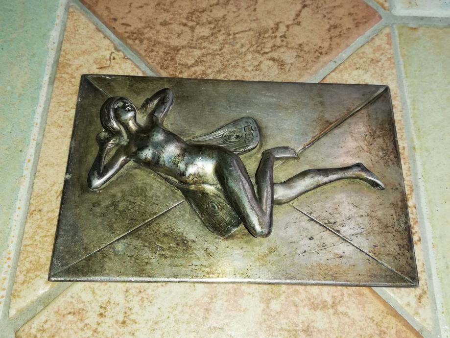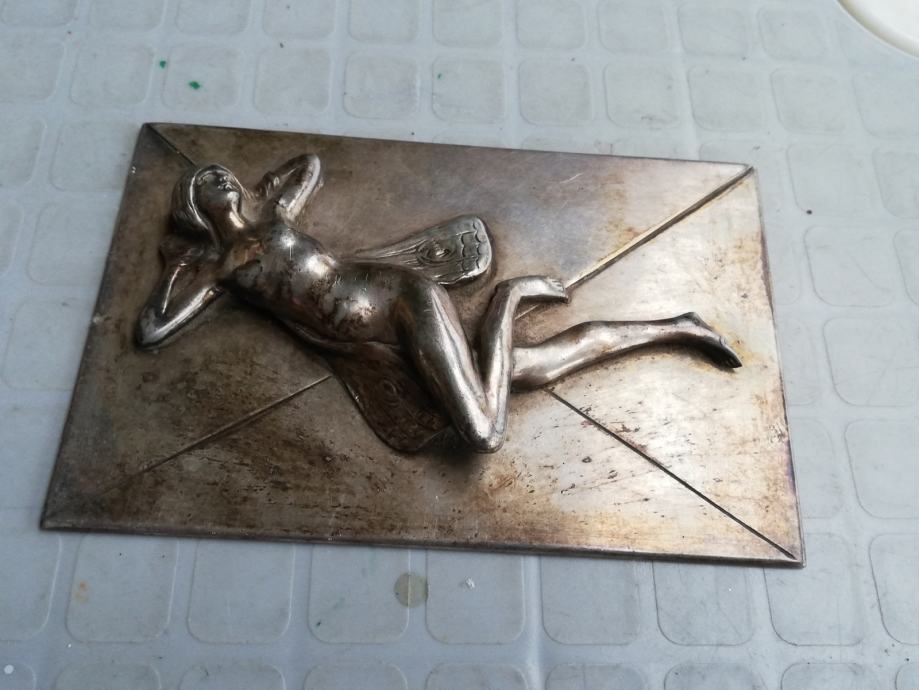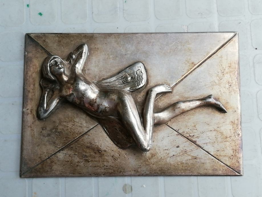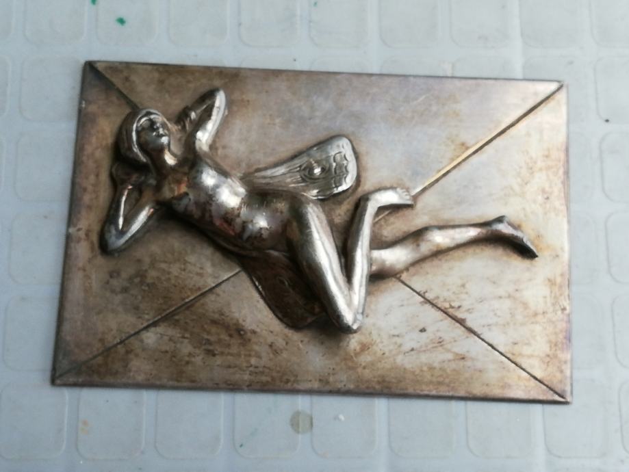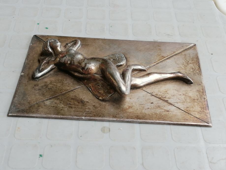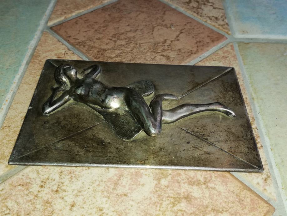 Gola djevojka, stolni držač za dokumente, prijelaz 19/20 St., secesija, dimenzije 14,5 x 9,6 cm, izvrstan rad.
