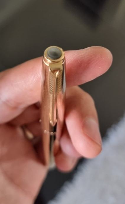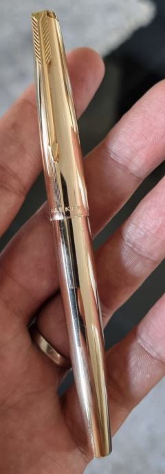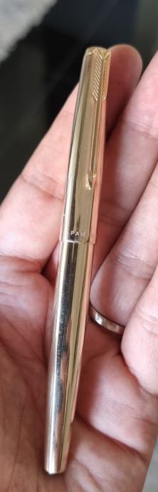 Vrhunsko nalivpero "PARKER" 65 CUSTOM INSIGNIA..made in England ...12 karata ROLLED GOLD - tijelo od valjanog 12 karatnog zlata- 1/10 zlata..14k 585 F zlatno pero. DOBRO SAČUVANO STANJE..cijena ovakvog nalivpera na vanjskim aukcijama 190 dolara.