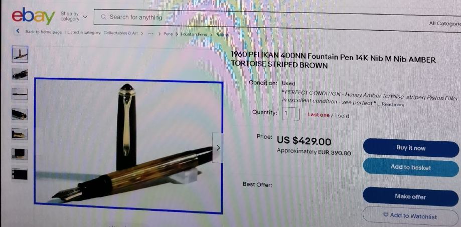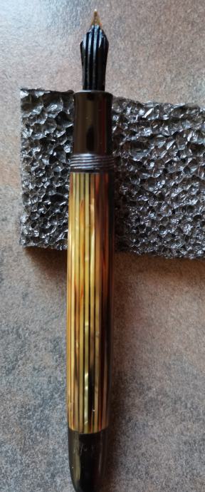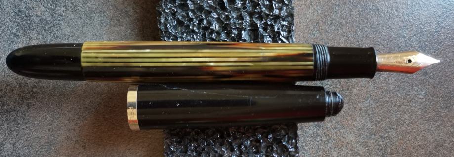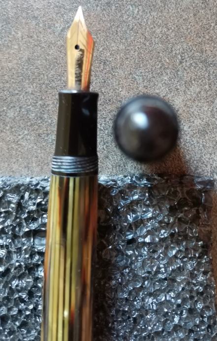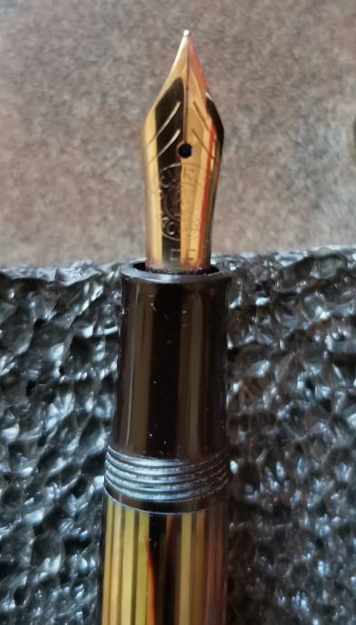 Vintage nalivpero iz 1950.-tih godina "PELIKAN" 400 NN BRPWN TORTOISE..14 karata zlatno pero EF finoće..pero u dobrom stanju...pumpica radi glatko...očišćeno u destiliranoj vodi...POKLOPAC IMA NAPUKNUĆE I NEDOSTAJE KLIPSA-IZ TOG RAZLOGA CIJENA IZRAZITO KORIGIRANA.