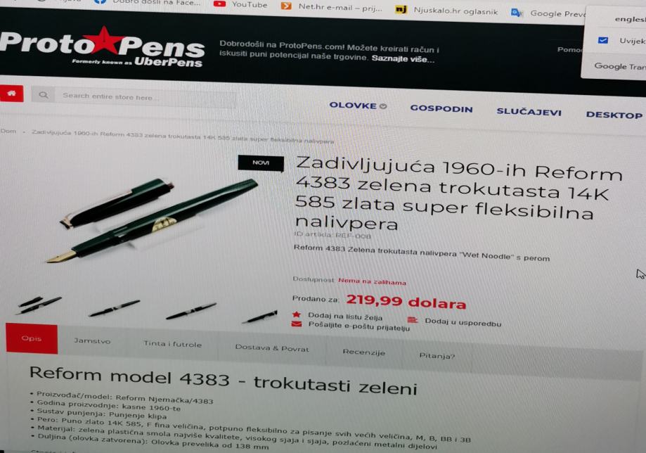 vrhunsko , najkvalitetnije Reform nalivpero.."REFORM" TRIANGULAR...ŽELENA KVALITETNA SMOLA..POZLAĆENA KLIPSA I RIHG..ZLATNP 14 K 585 F PERO.