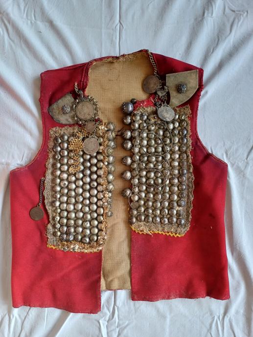 6. muški prsluk/jelek bez rukava s manjim srebrnim tokama (oko 200 komada toka/dugmadi), dodatno ukrašen sa 6 kovanica iz doba Marije Terezije i Franje Josipa