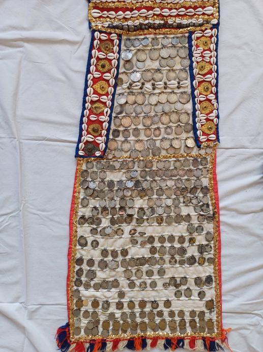 1. ukrasna prednjica od vune (1.8m x 0.6m), ima cca 250 kovanica, uglavnom od srebra (18., 19., i 20. st.)