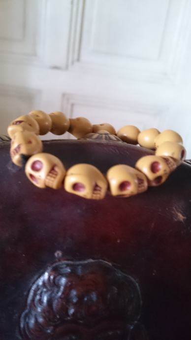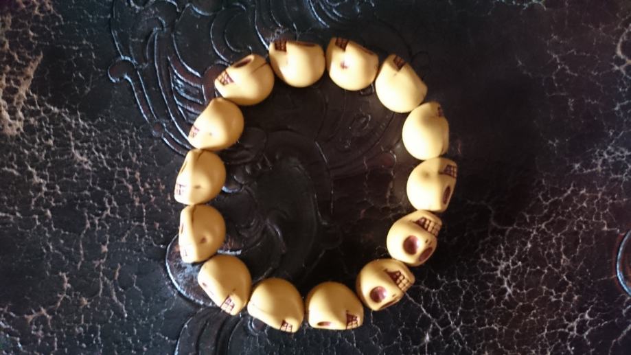 Motiv na narukvici su male ljudske lubanje