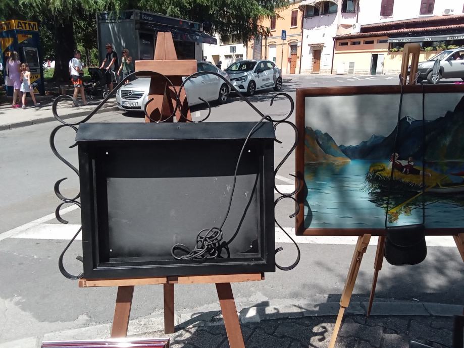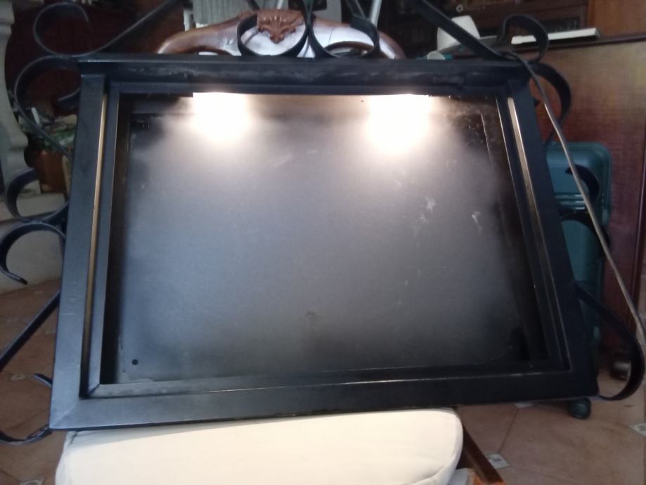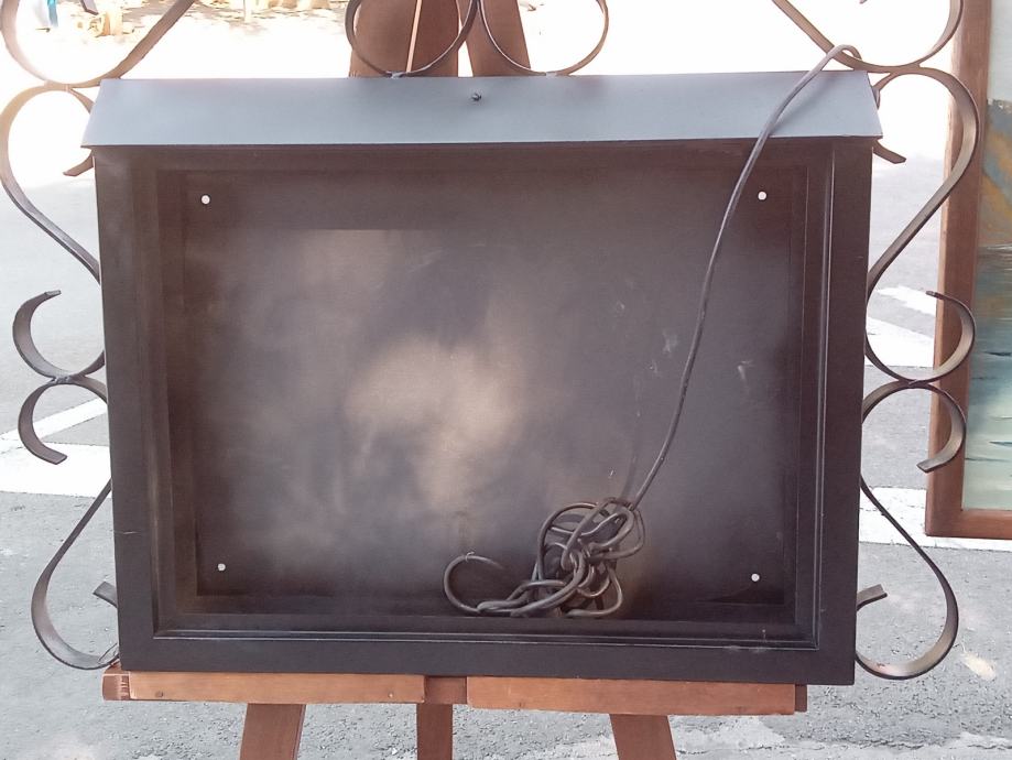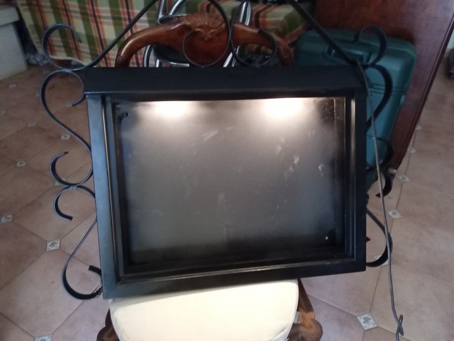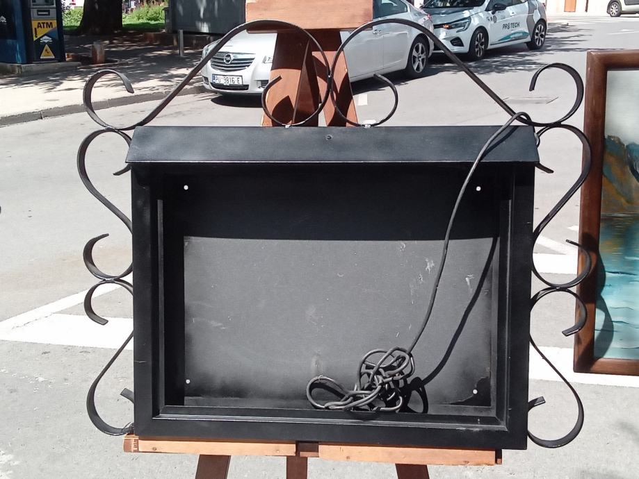 Zidna metalna kutija za cjenik za restorane ili kafice od kovanog zeljeza sa unutarnjim svjetlom. Dimenzije kutije 80x70 cm.