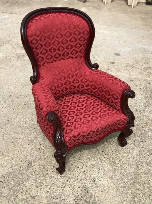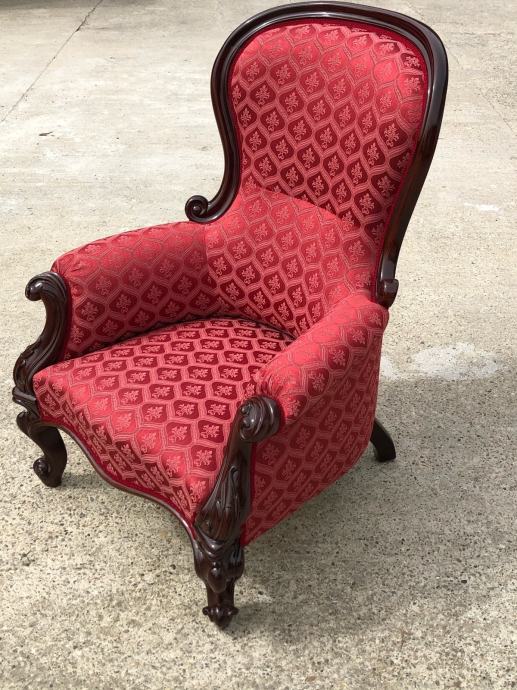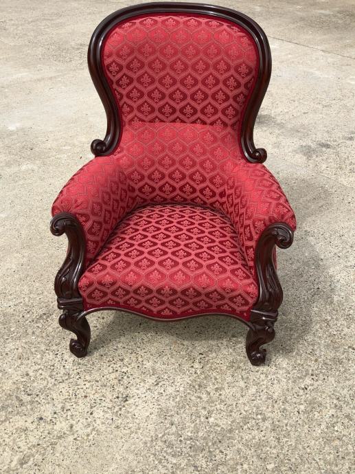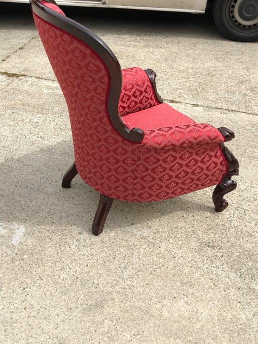 Fotelja napravljena u drugoj polovici 19 stoljeca od mahagonijevog drva sa prekrasnim rezbarijama.