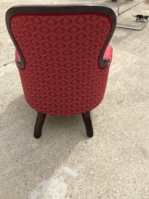 Fotelja je kompletno uredena i ucvrscena te nanovo tapecirana(gurtne, federi, trava)