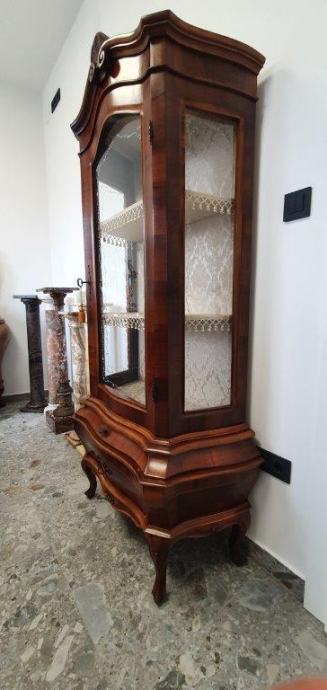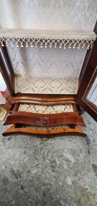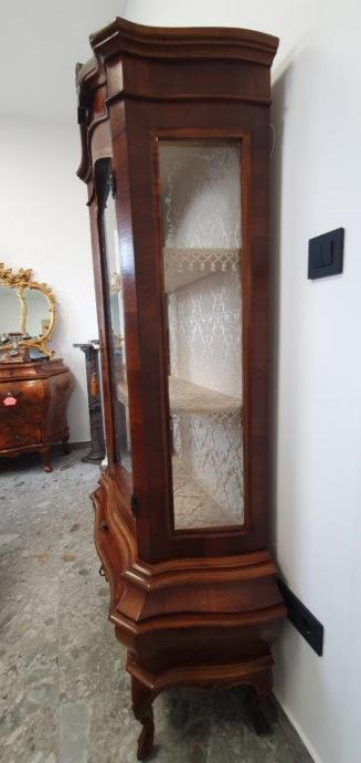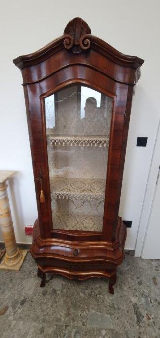 Predivna neobarokna jednokrilna kristalijera u savršenom stanju, kompletno tapecirana iznutra (uključujući i ladice)