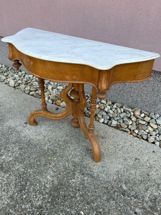 Neobarokna konzola napravljena u drugoj polovici 19stoljeca u dobrom stanju sa mramorom u odlicnom stanju.