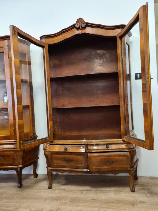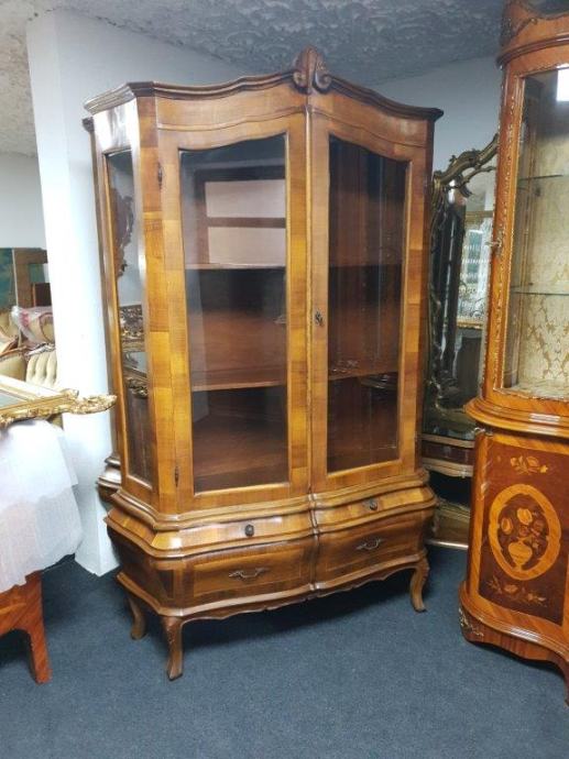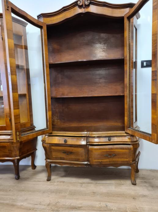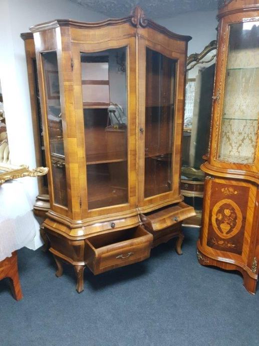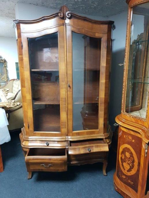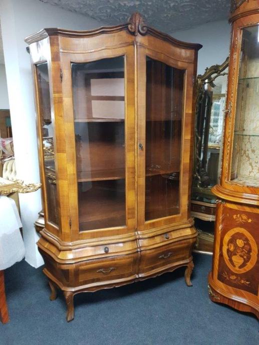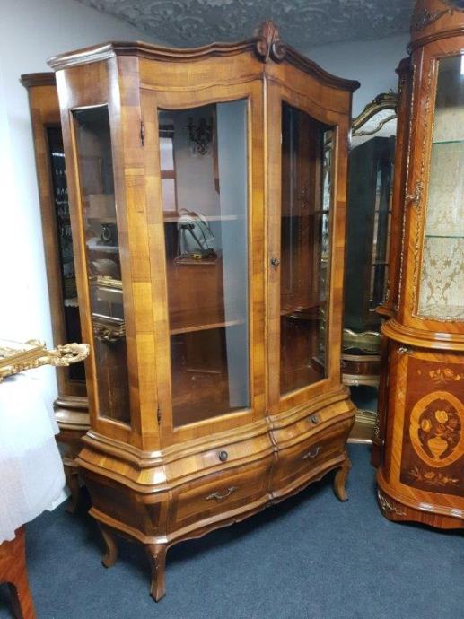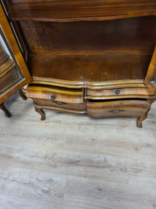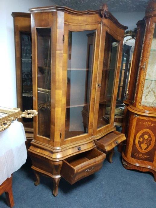 Bombirana neobarokna kristalijera u perfektnom stanju, masivna, s četiri ladice i 2 police.