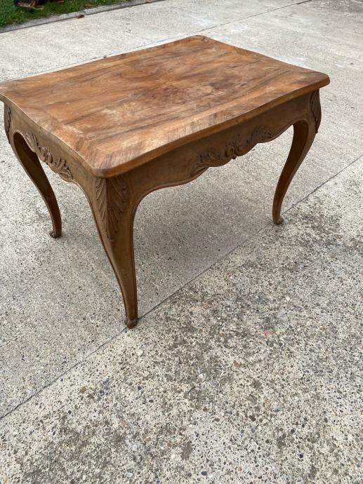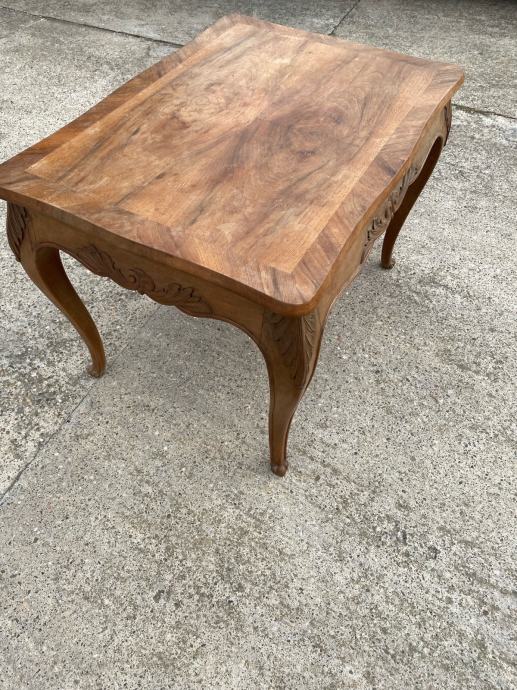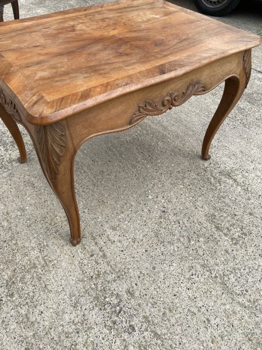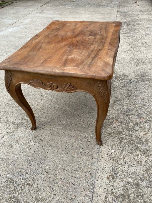 Stol u neobaroknom stilu u vrlo dobrom stanju, nogice lijepo rezbarene u orahovom drvu a ploca furnirana orahovim furnirom.