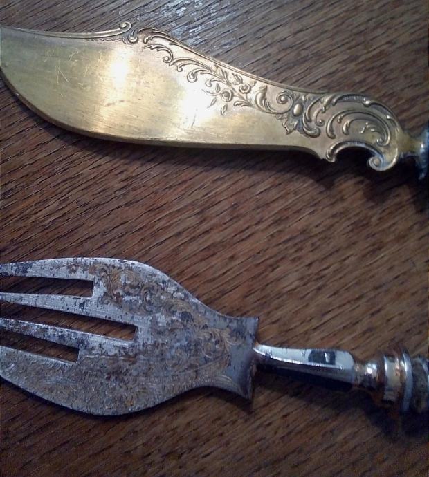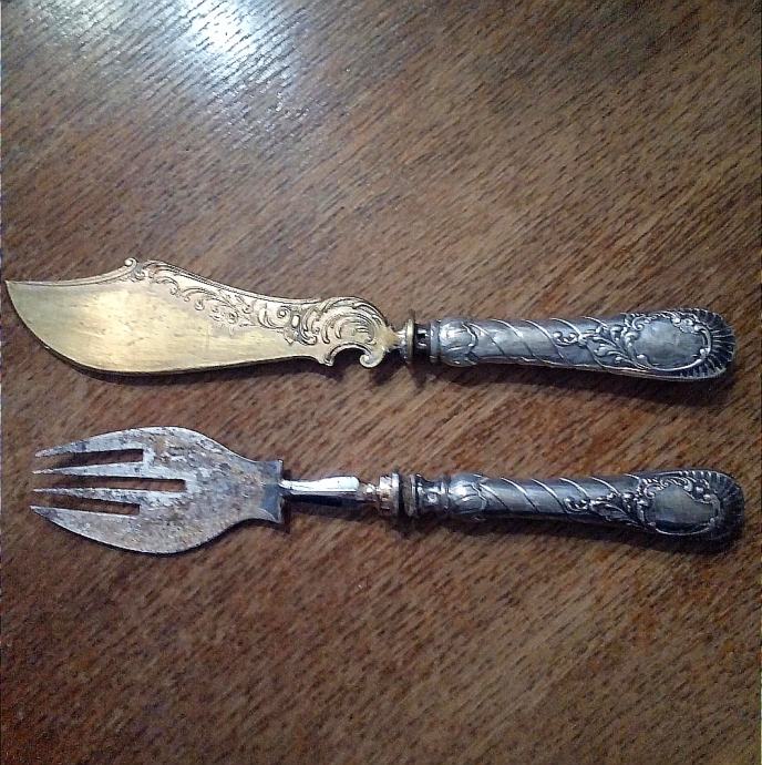 Pribor za serviranje ribe, izrađen u neorokoko stilu vjerojatno početkom dvadesetog stoljeća, možda u Švedskoj.