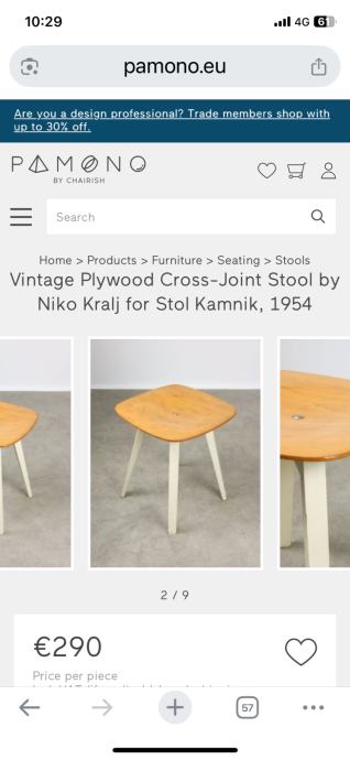 Prodajem četveronožni pomoćni stolic ili klupicu dizajner Niko Kralj za Stol Kamnik 1954 godina.Izvrsno izvorno stanje .Visina 45 cm,sjedalo 40 x 39 cm.