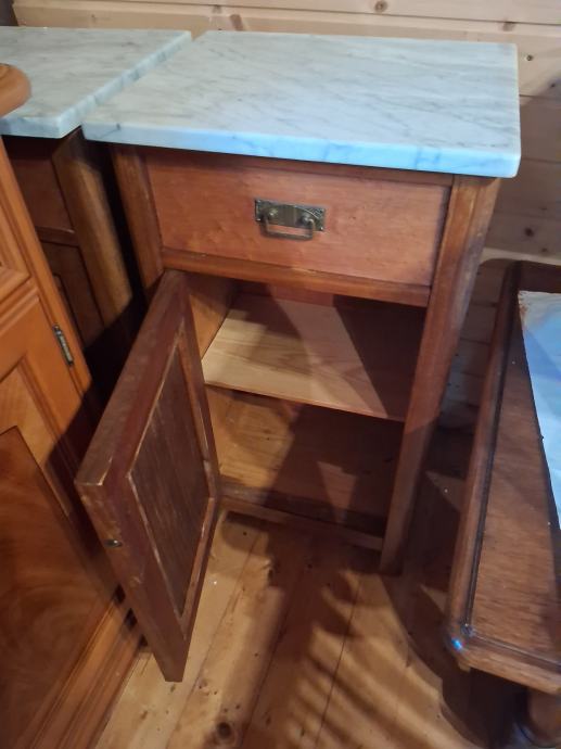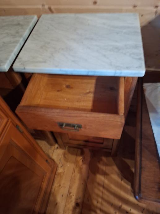 Nocni ormarici sa mramorom u odličnom stanju. Sirina 46cm, dubina 36 i visina 80 cm. Cijena jednog ormarica je 110 eura.
