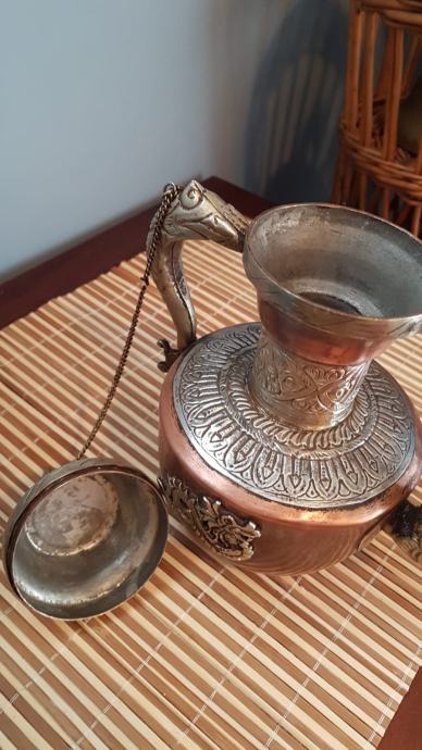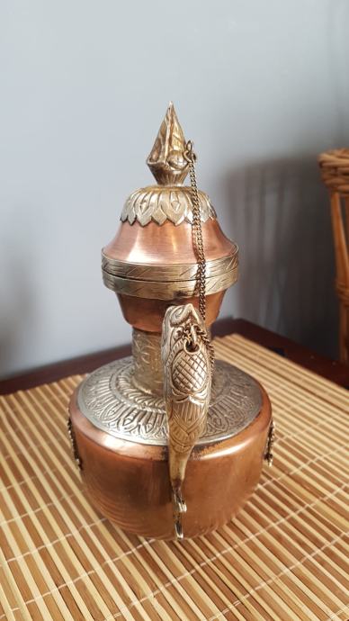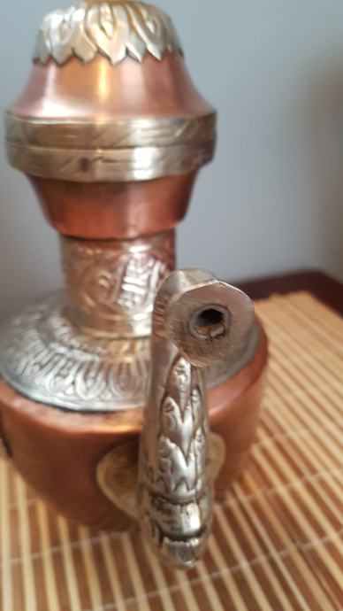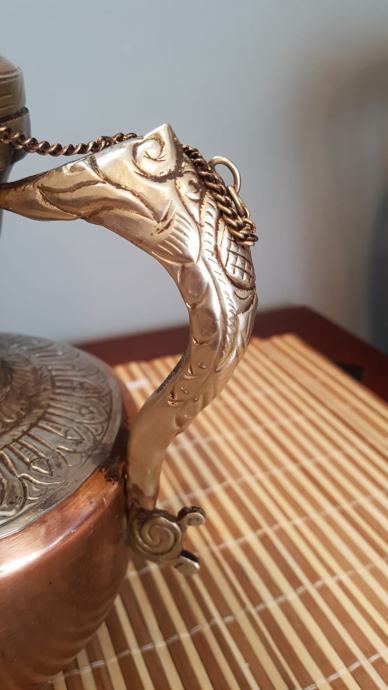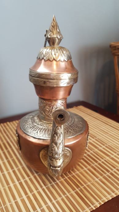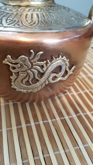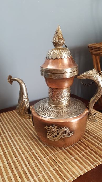 Starinski Tibetanski posrebreni čajnik ,od Tibetanskog bakra i mesinga sa zmajevima