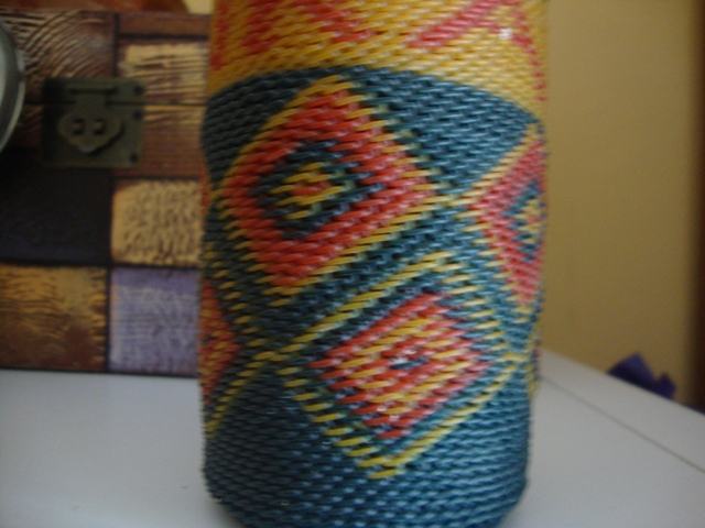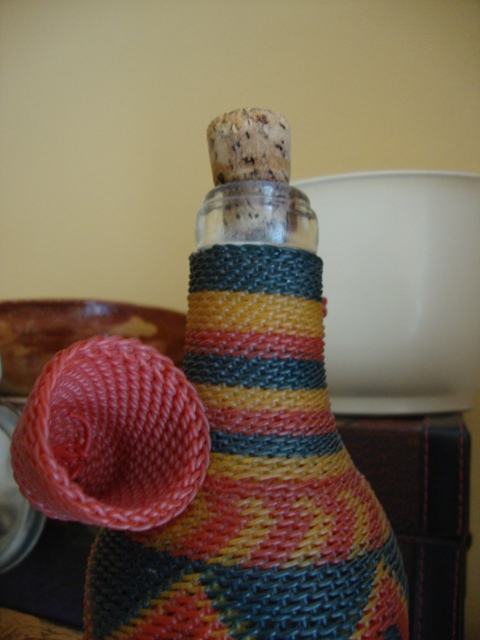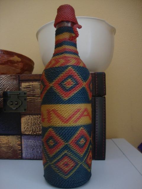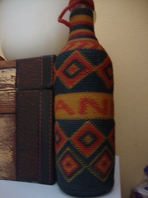 1 l, obložena, opletena... Okolo boce je pleteno najlonskim koncem. Po sredini piše IVANKA...