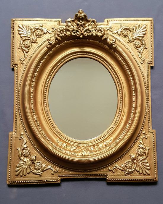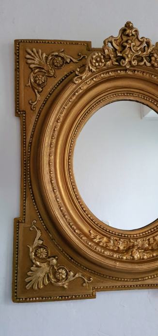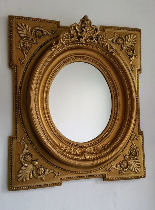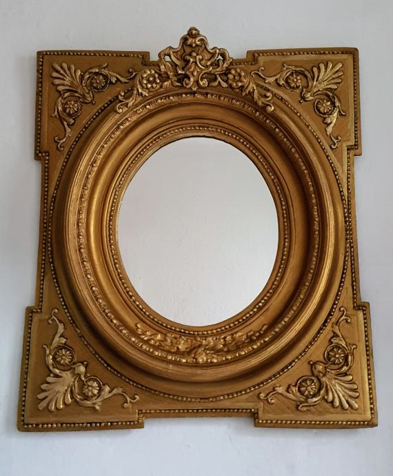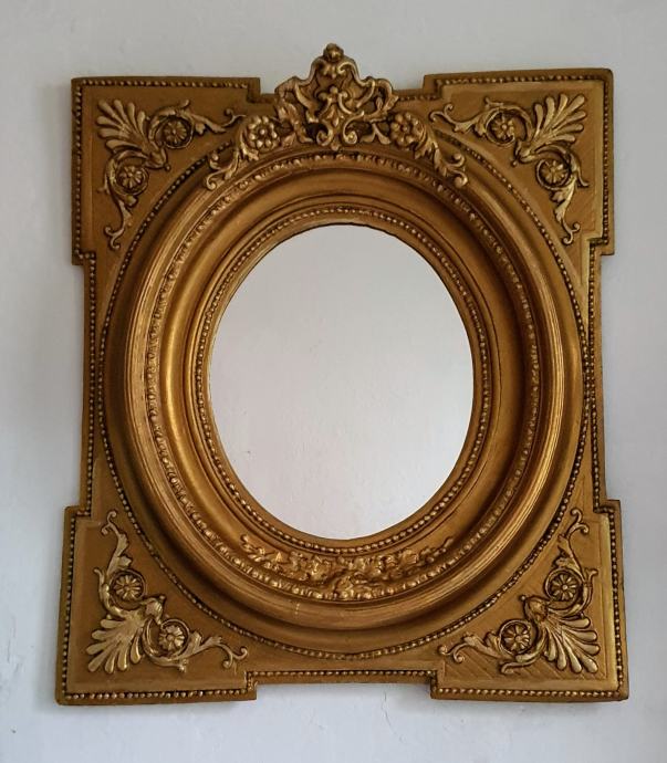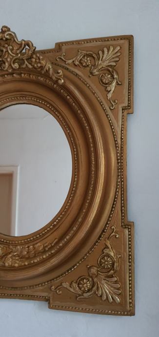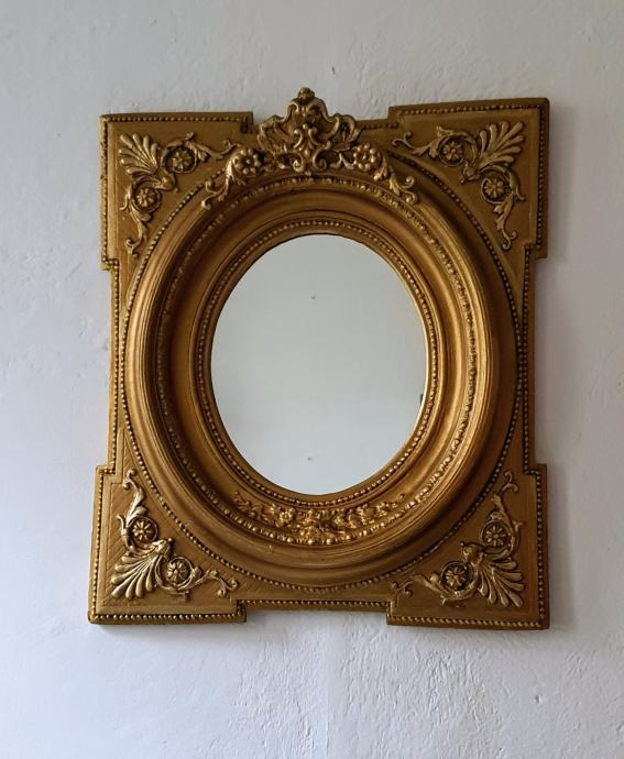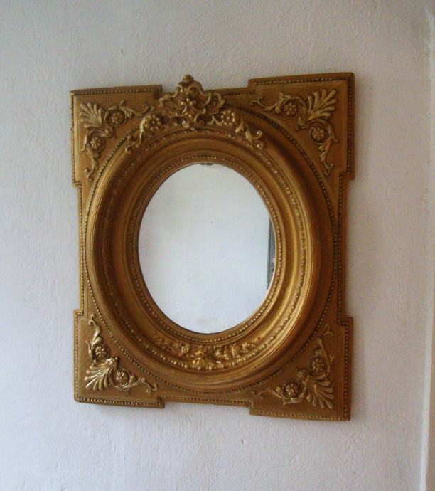Krasno staro ogledalo sa kraja 19.stoljeća drvo ukrasna štukatura pozlata dimenzije 46 cm x 53 cm