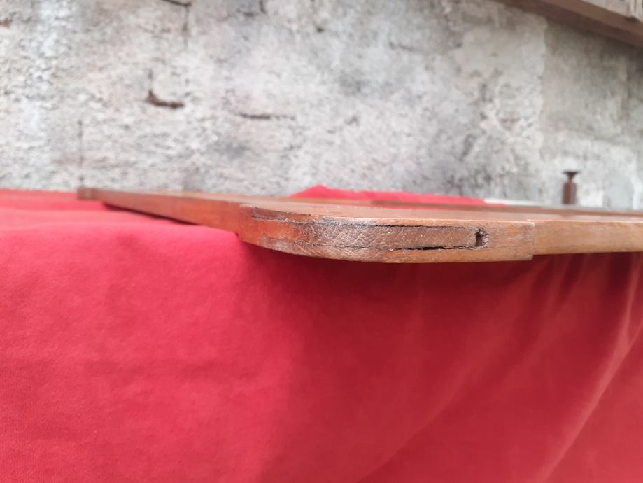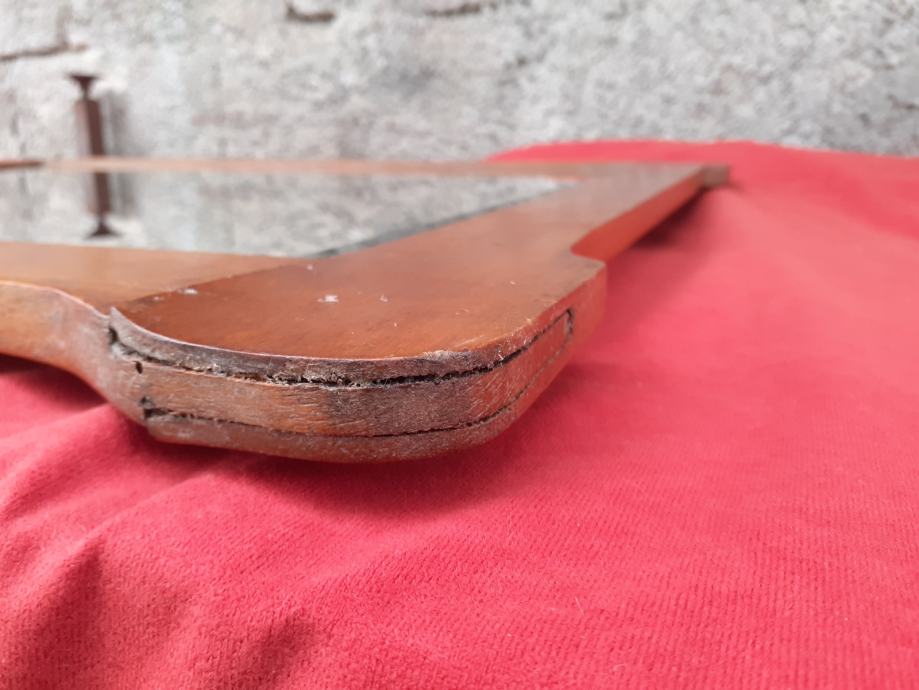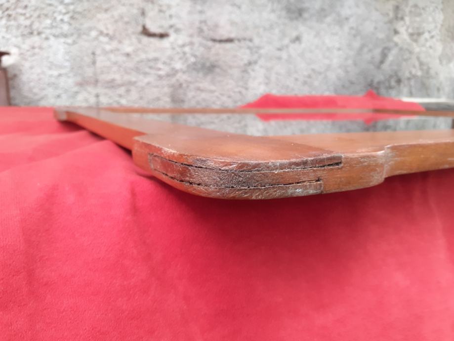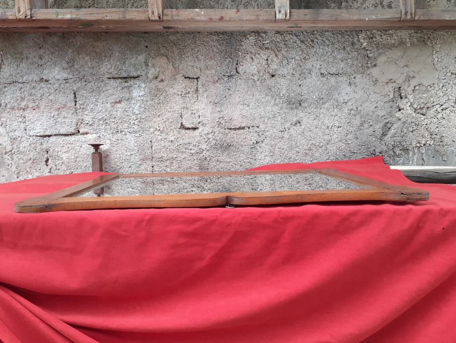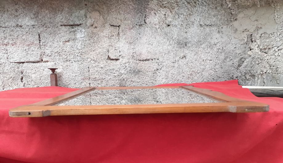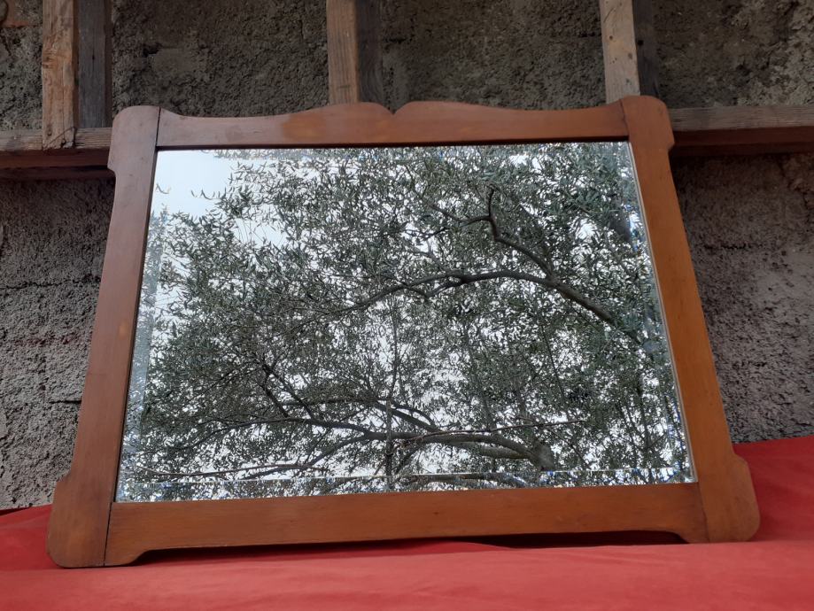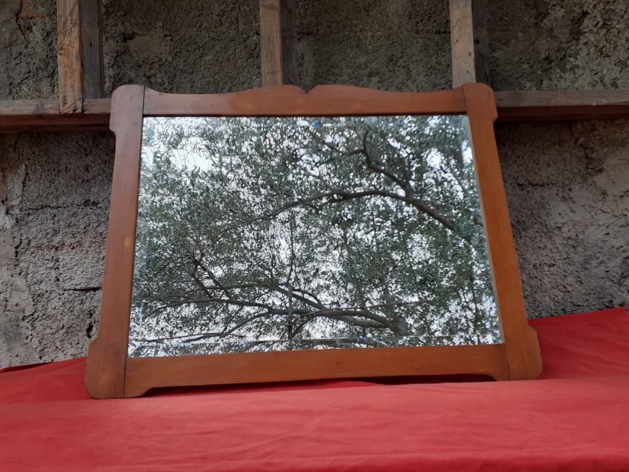 Prodaje se ogledalo sa starim drvenim okvirom (okvir je moguće iz razdoblja secesije). Samo ogledalo je moguće novo i moguće od brušenog kristalnog stakla. Dimenzije okvira su: najveća dužina cca 79,5 cm - 79,8 cm i najveća visina cca 61,7 cm - 62,1 cm. Dimenzije samog ogledala su 66,8 cm × 48 cm. Okvir ima dvije rupe moguće od crvotočine dok su na nekim dijelovima okvira drveni spojevi malo uzdignutiji iz ležišta, okvir ima manje površinske ogrebotine i manje nedostatke materijala drva, te je na nekoliko mjesta okvir svjetlije boje zbog brušenja površinskog sloja drveta. Također, na posljednjoj slici vidi se mala rupa na spojevima drva koja je očišćena od nepoznatog materijala koji se nalazio u njoj, te je ista slikana nakon čišćenja koje se izvršilo poslije slikanja prethodnih slika. Cijena ogledala je 300 eura. Mogućnost osobnog preuzimanja u Zadru. Kontakt broj mobitela 091 131 10 36.