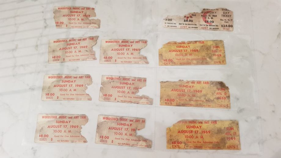 Originalne karte sa Woodstocka 1969. Nije replika. Uz karte saljem certifikat o autenticnosti. Od 15€ do 35€.